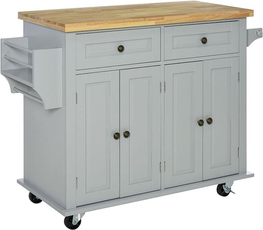 HomCom Kitchen Island on Wheels, Rolling Cart with Rubberwood Top - B08L44DQF8