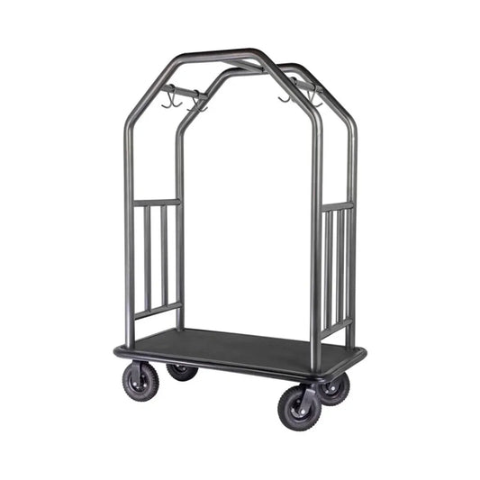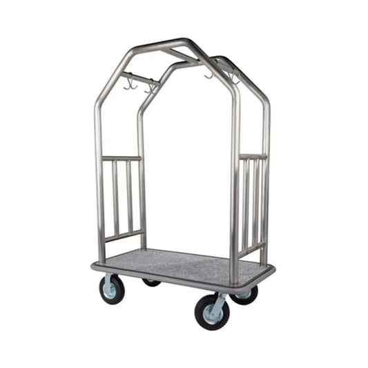 Hospitality 1 Source ESBSGG-8 Estate Series Bellman's Cart — Brushed Stainless Steel - 8" pneumatic wheels - ESBSGG-8