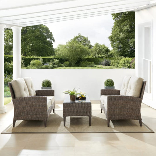 Crosley Rockport Outdoor Wicker 3pc High Back Conversation Set Oatmeal - KO70212LB-OL