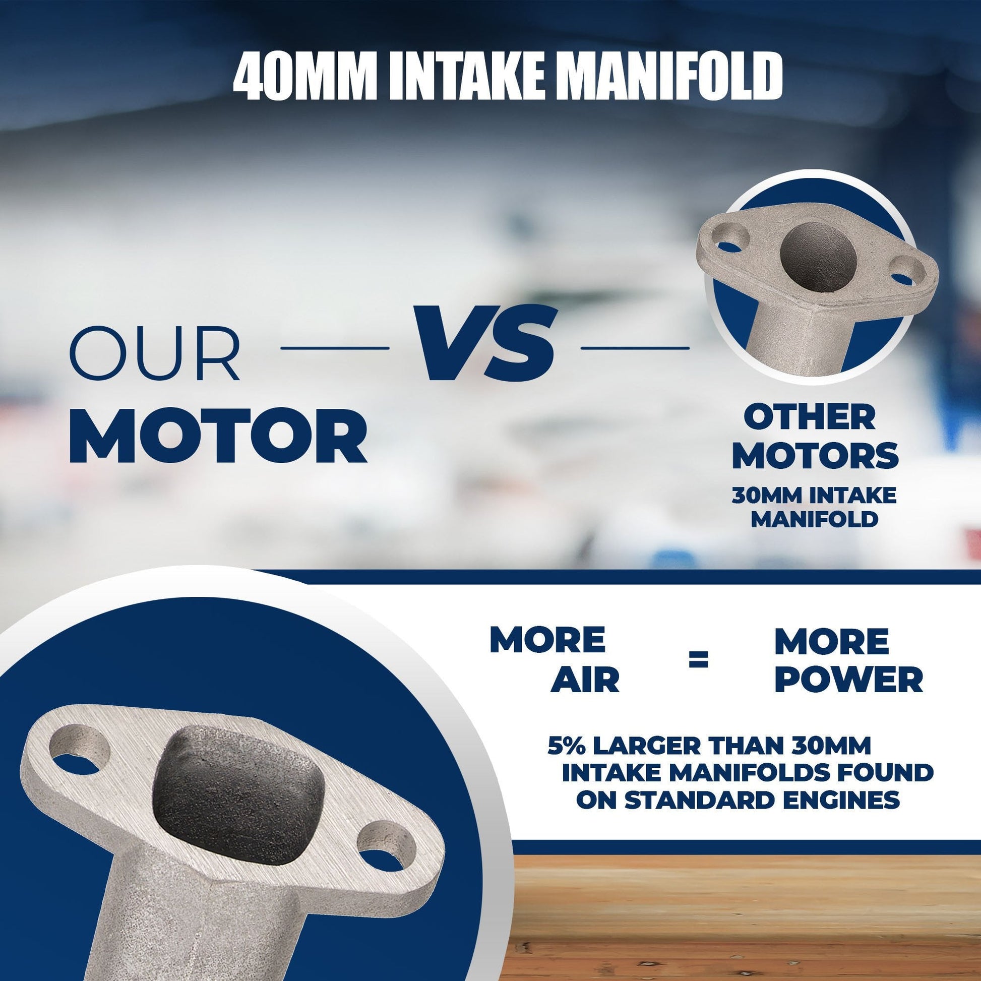 A: A high-performance 80cc 2-stroke engine designed for speed and acceleration.