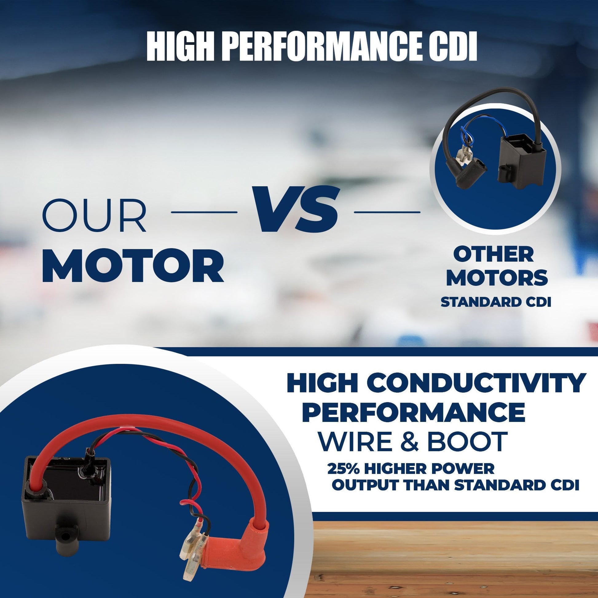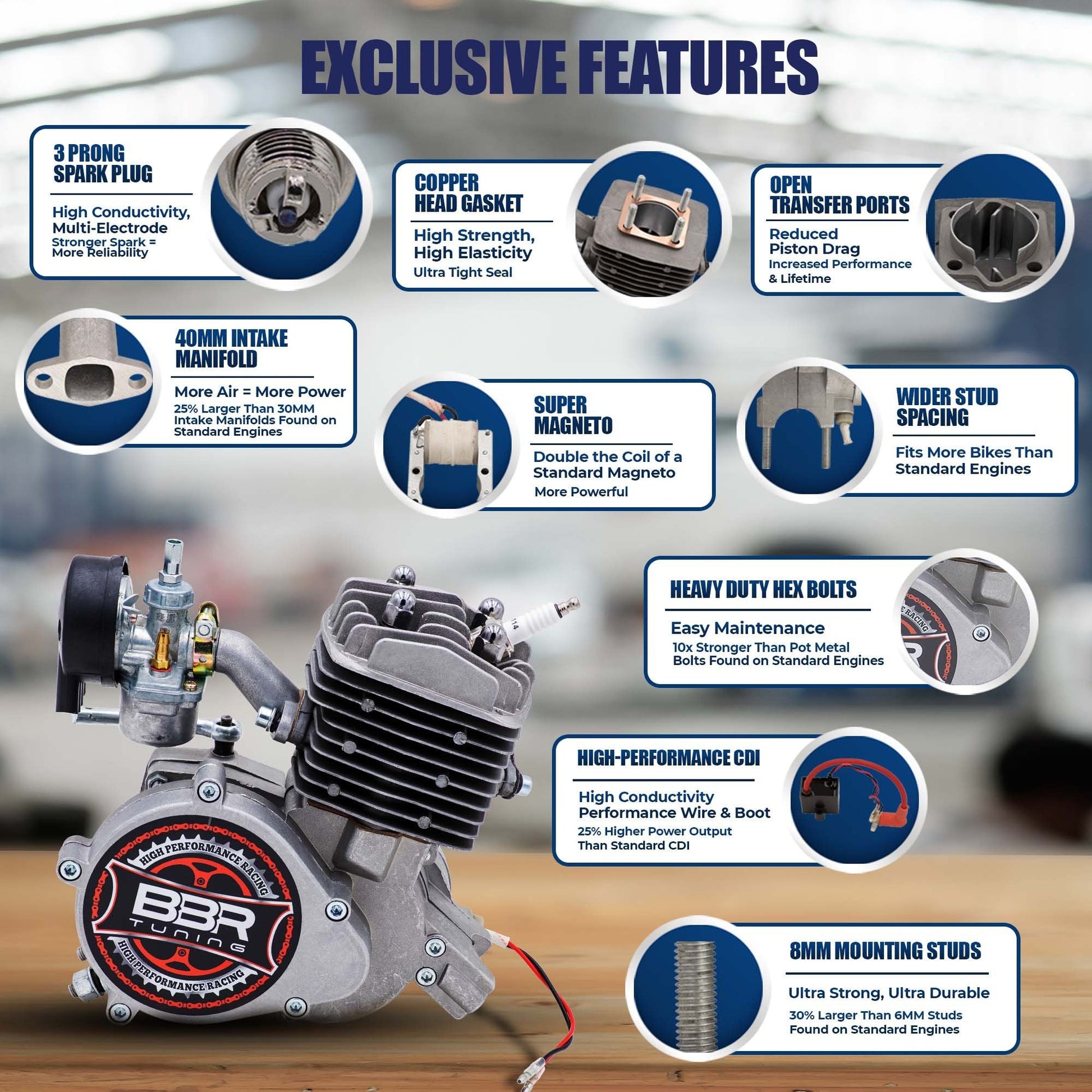 Enhanced Performance: The BBR Tuning 66/80cc 2-Stroke Engine (STK-BEK80-S) significantly boosts the bike's power, providing higher speed and smoother acceleration compared to stock engines.