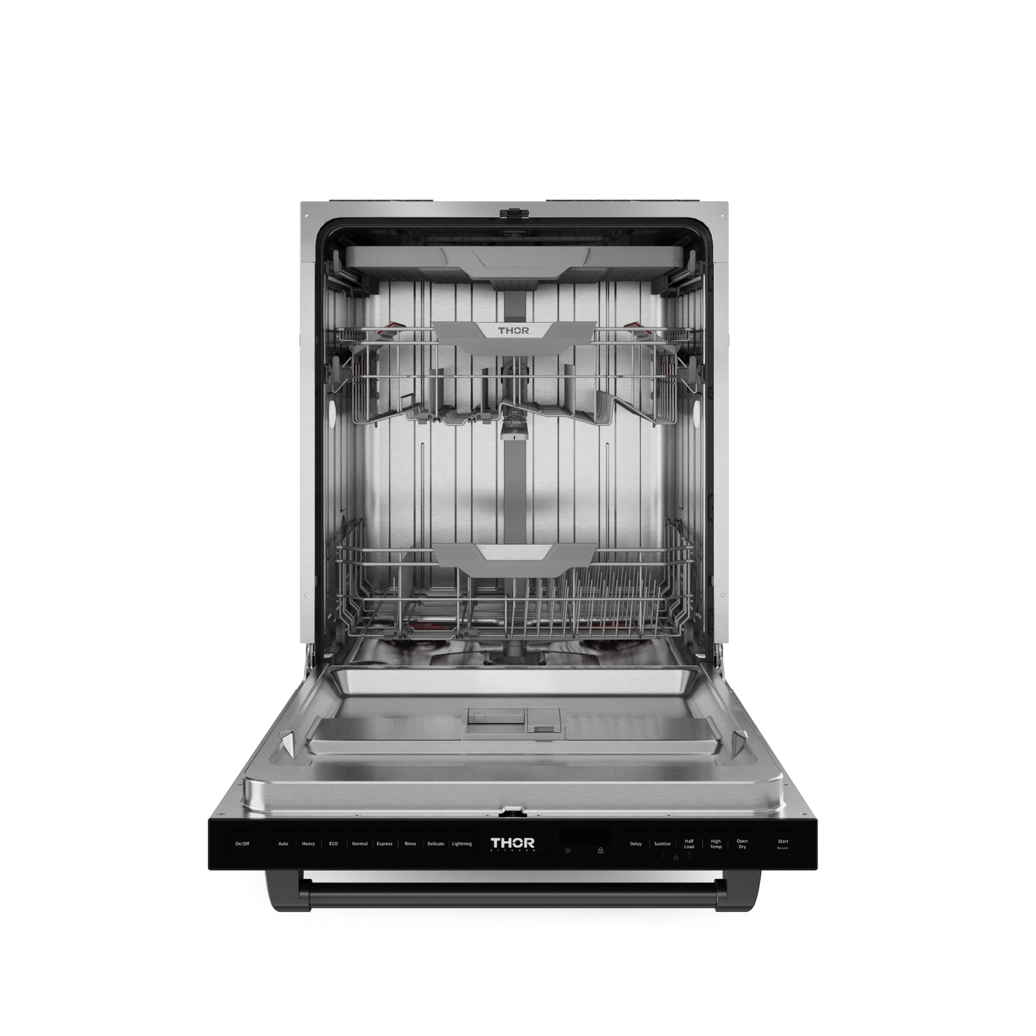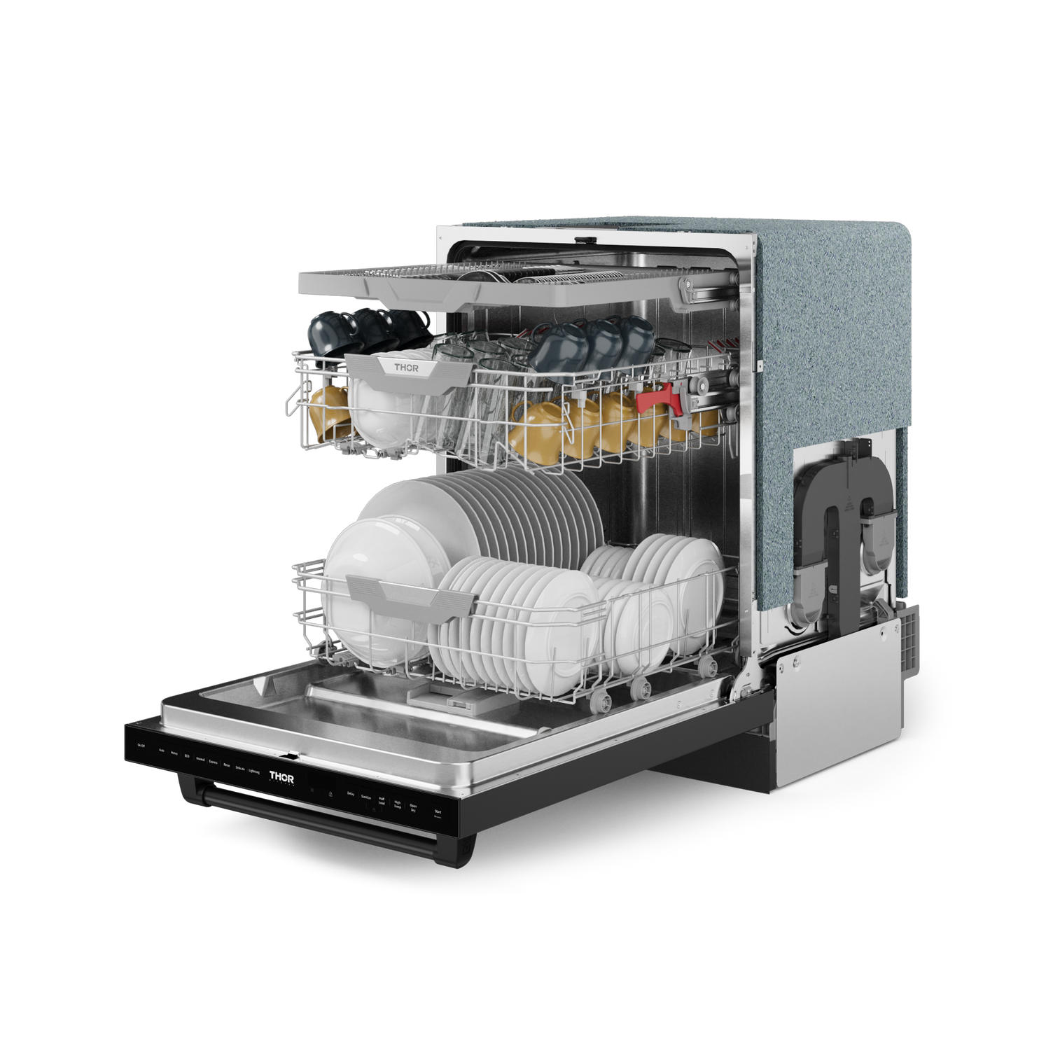 Multiple wash cycles handle everything from delicate glassware to heavily soiled pots.