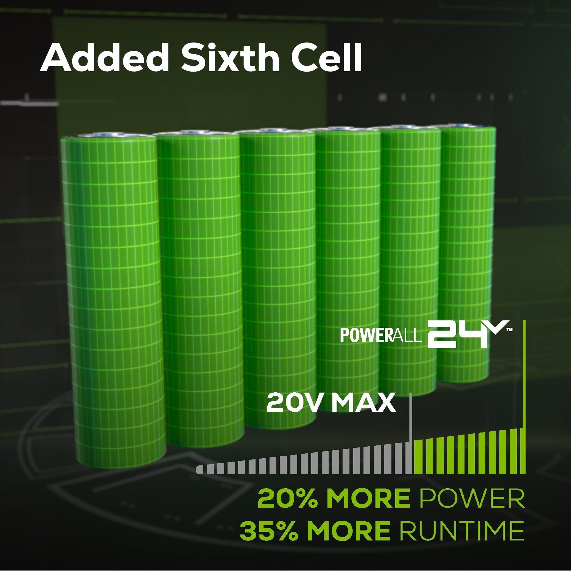 One PowerAll 24V battery works with 125+ Greenworks tools. From power tools to outdoor power equipment and lighting to floor care, there’s no limit to what you can accomplish.