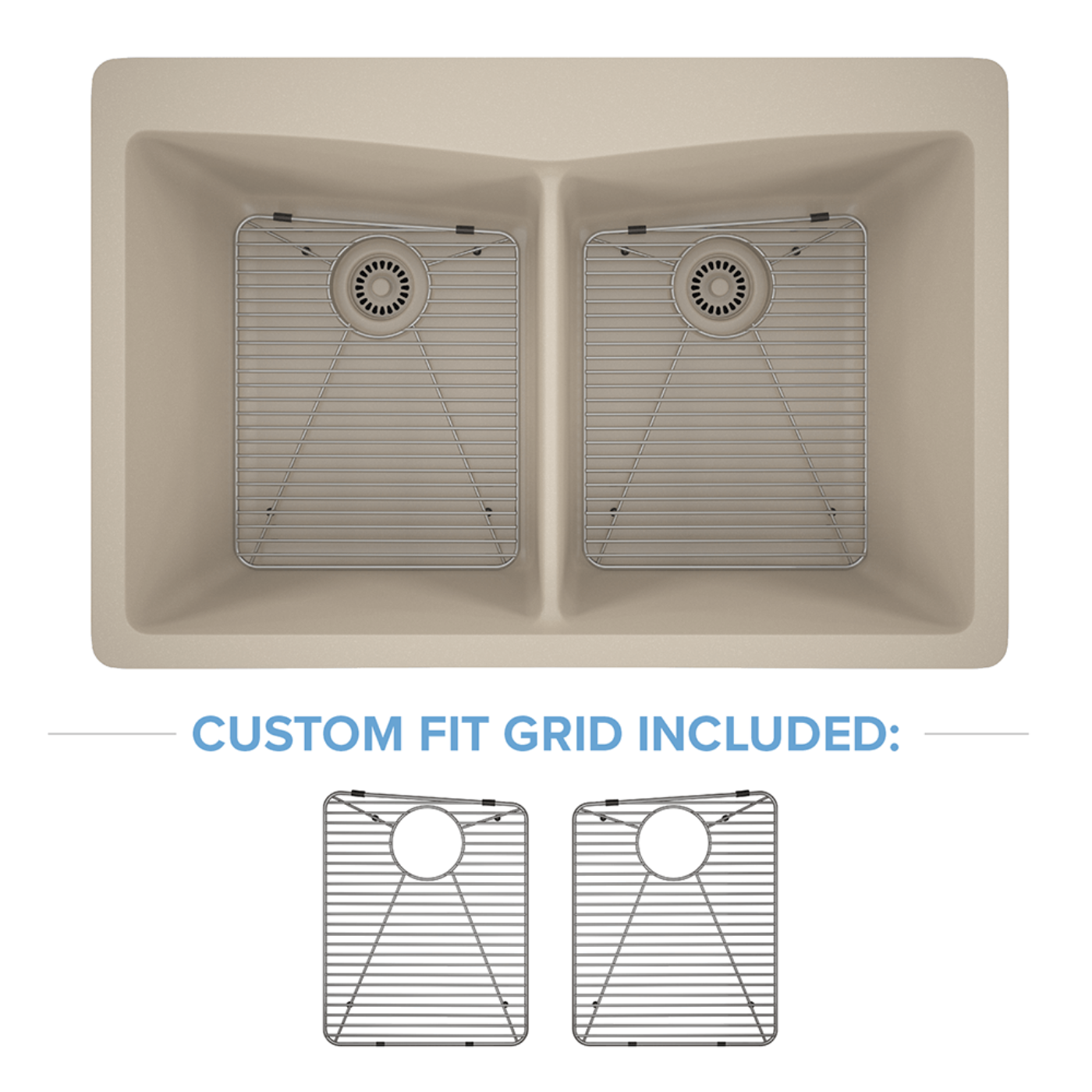 Balanced Design: 33" double bowl with 50/50 split offers equal space for washing and rinsing.