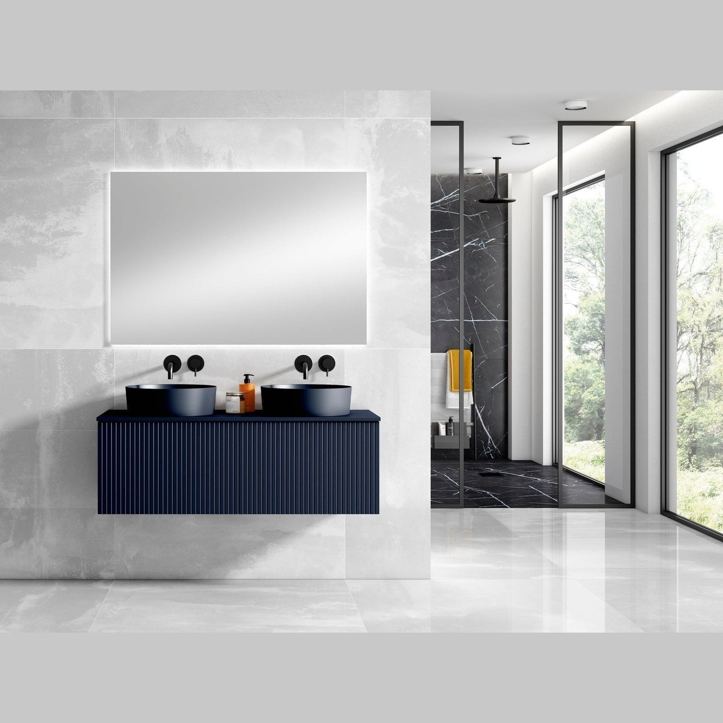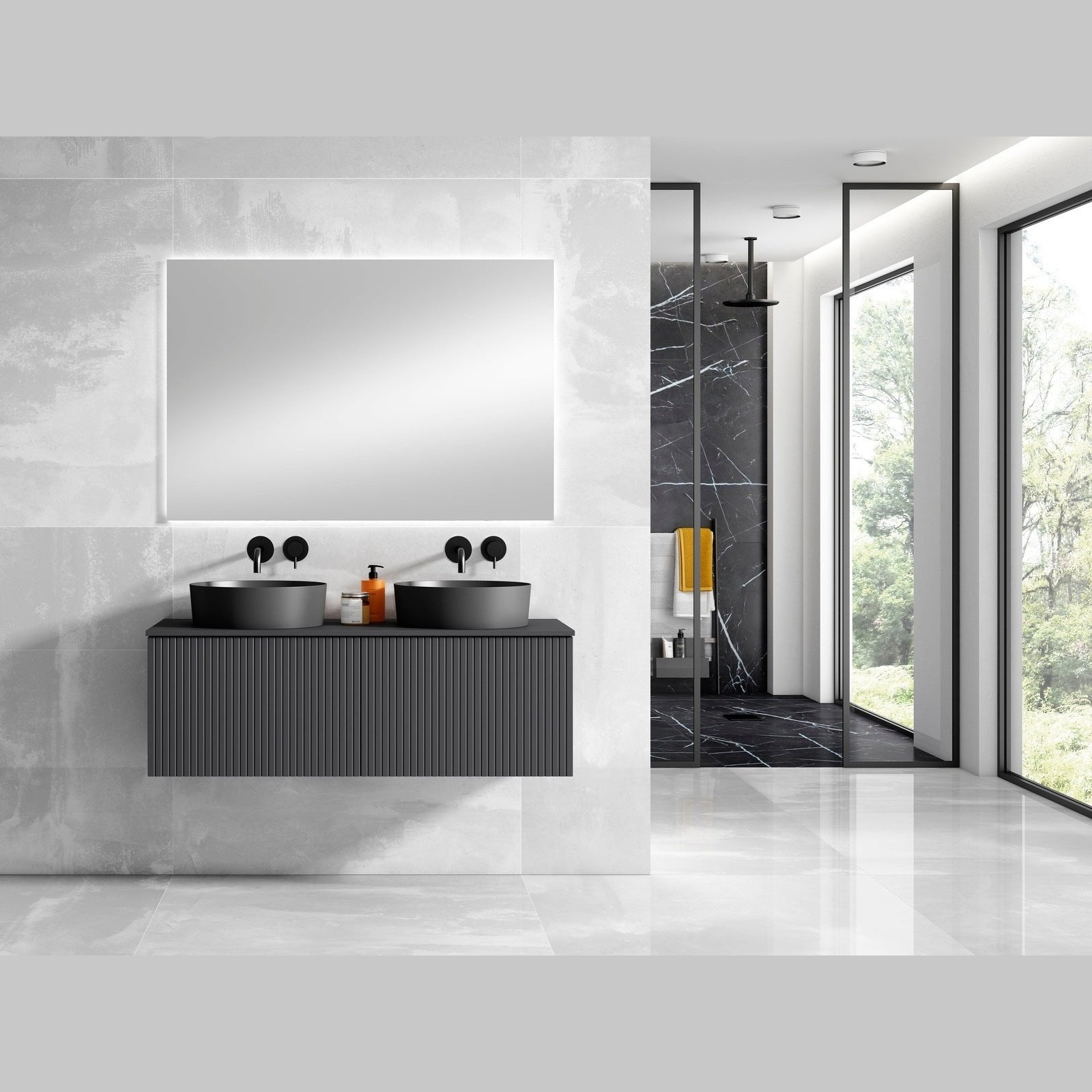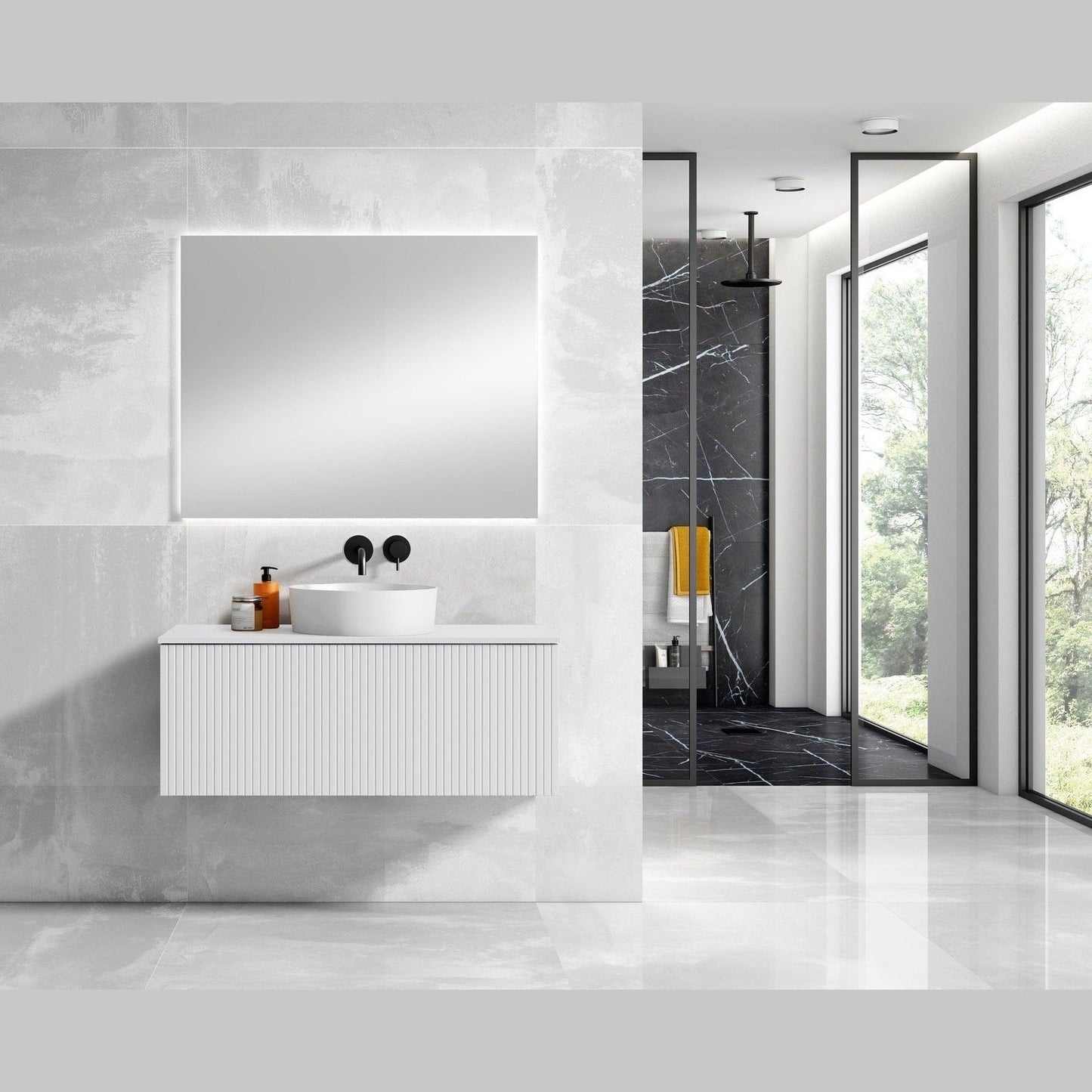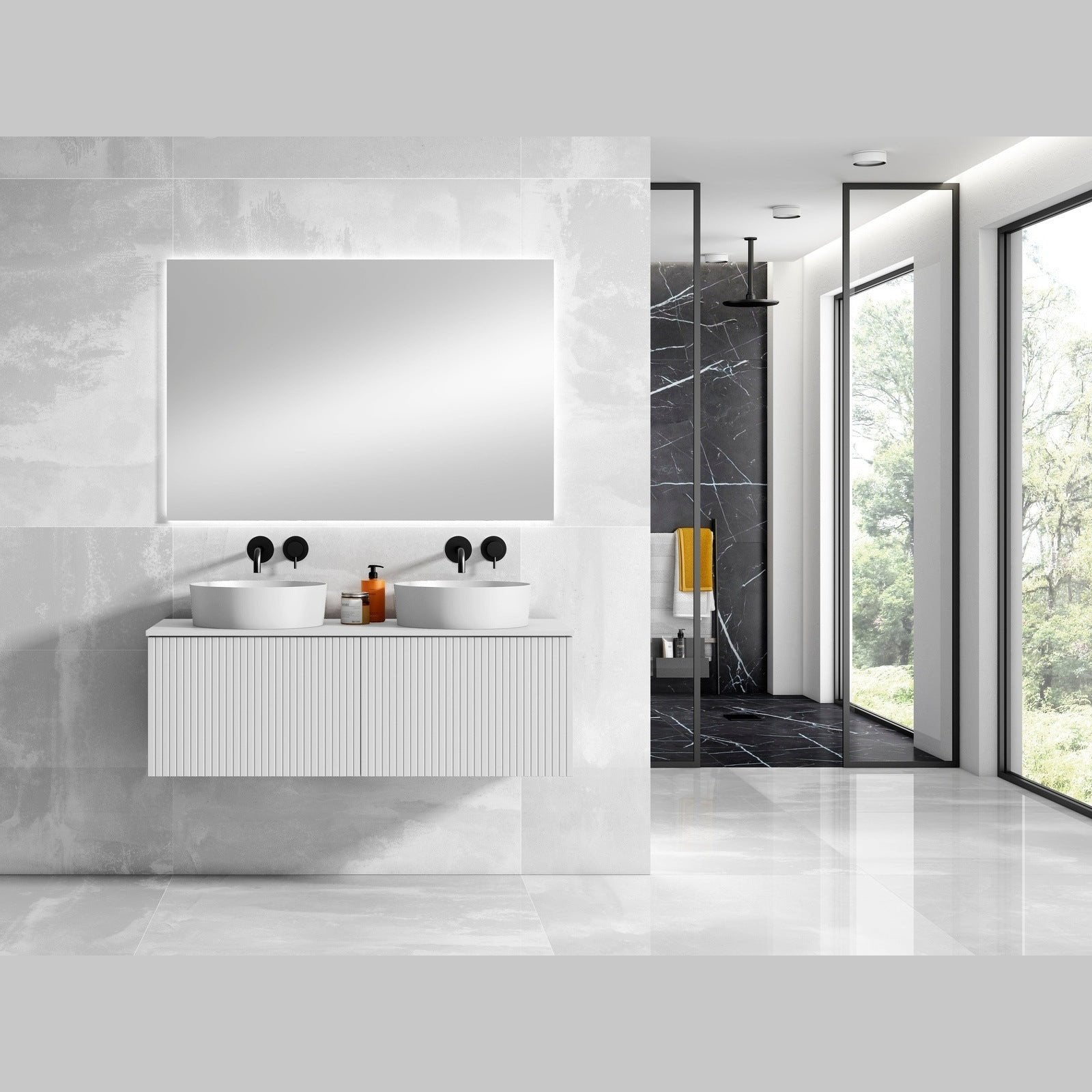 A: It combines modern design, high-quality materials, and ample storage to create a chic and functional bathroom centerpiece.