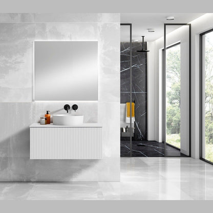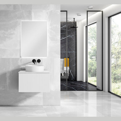 Vessel Ceramic Sink: The stylish vessel sink enhances the vanity’s modern aesthetic while offering a durable, easy-to-clean surface.