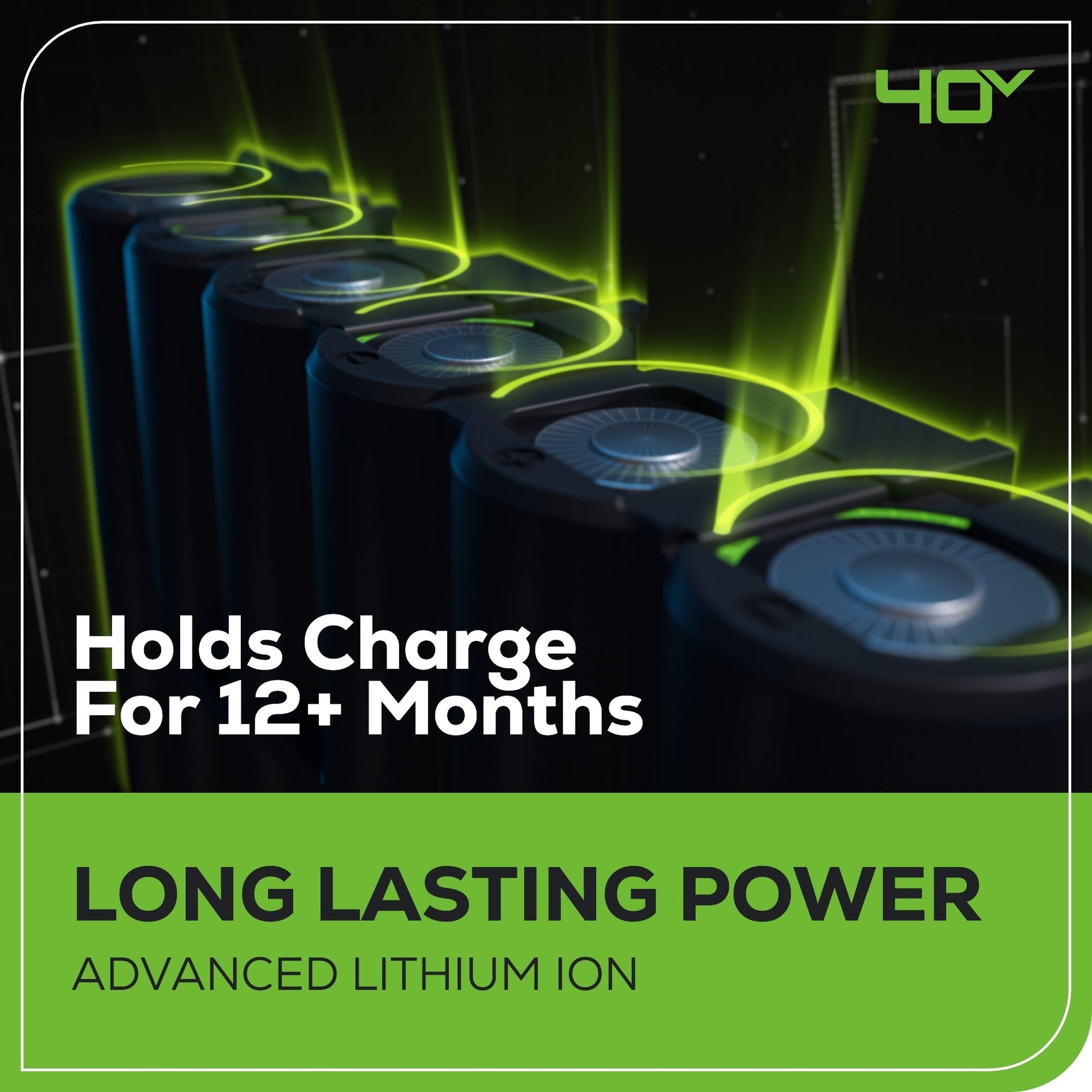 A: Yes, the 40V battery is compatible with other Greenworks 40V tools, allowing you to use the same battery across a range of outdoor equipment like lawn mowers, string trimmers, and leaf blowers for added convenience.