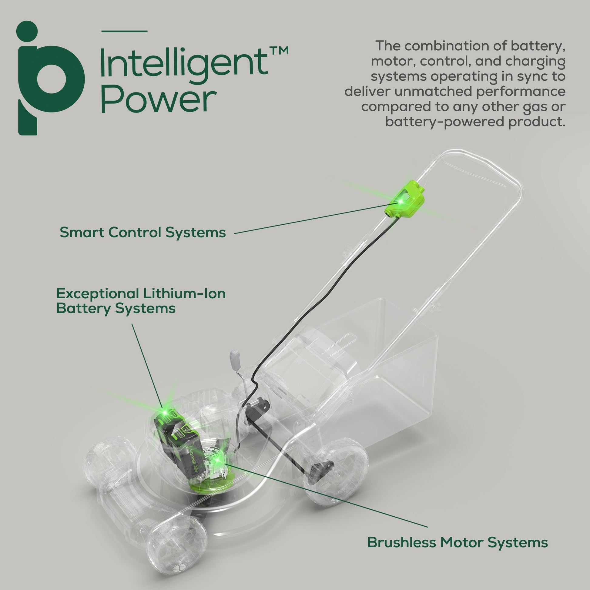 Powerfully smart. Tackle the toughest yards, one-handed, because our smart mowers never bog down. When grass gets thick, tall, or wet, Greenworks sensors tell our brushless motor to rush power to the mower blades. The end result- The perfect lawn, every time.