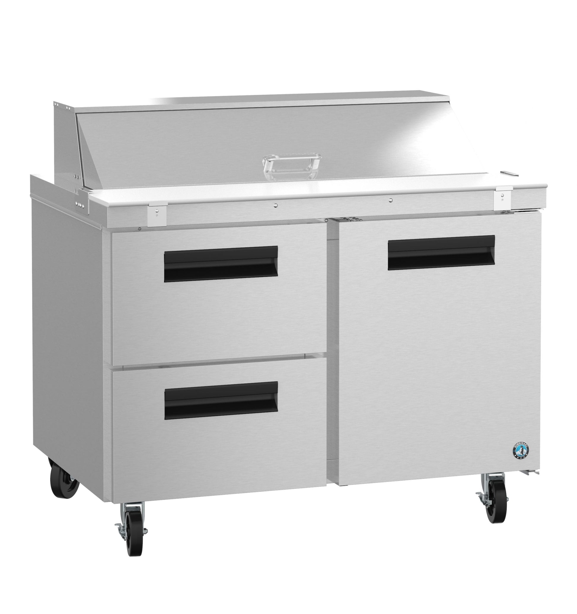 A: Offers 12.2 cu. ft. of refrigerated storage with two drawers and a 12-pan top for ingredient organization.