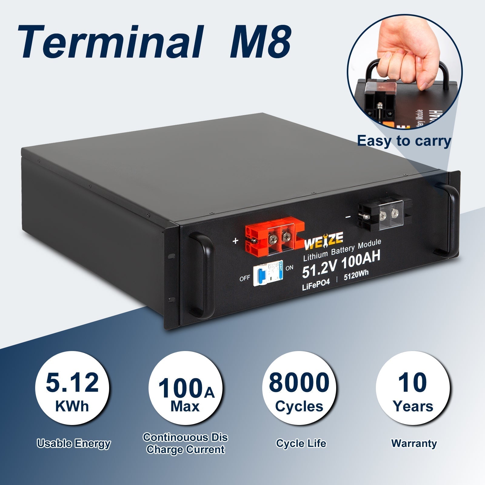 Empower your future with Weize 48V(51.2V) 100Ah LiFePO4 Battery, setting a new standard in endurance, performance, and environmental consciousness. Step into a world of limitless possibilities and make the switch to a greener, more efficient power solution.