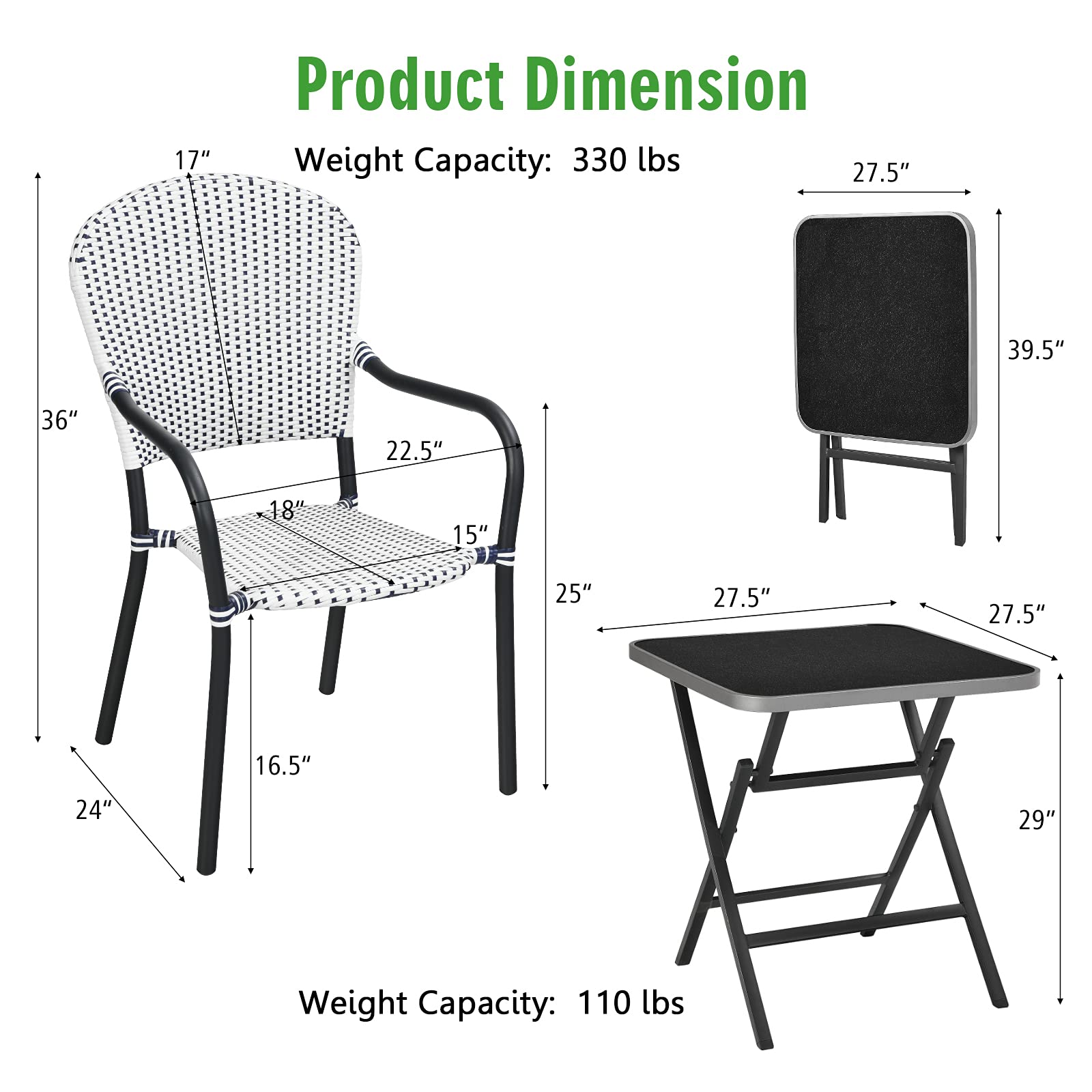 Weight Capacity of Each Chair: 330 lbs