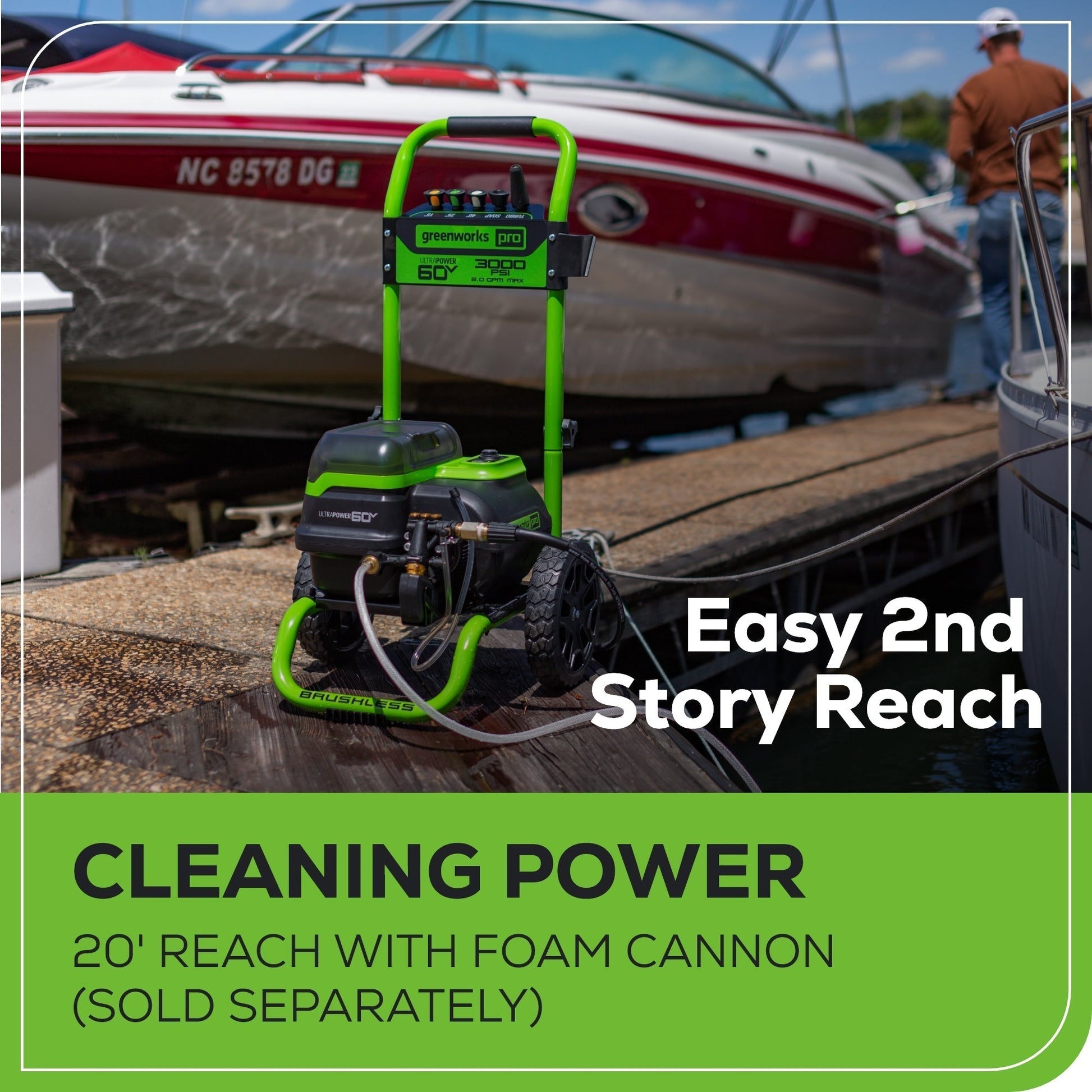 Q: Why choose the Greenworks 60V 3000-PSI Pressure Washer?