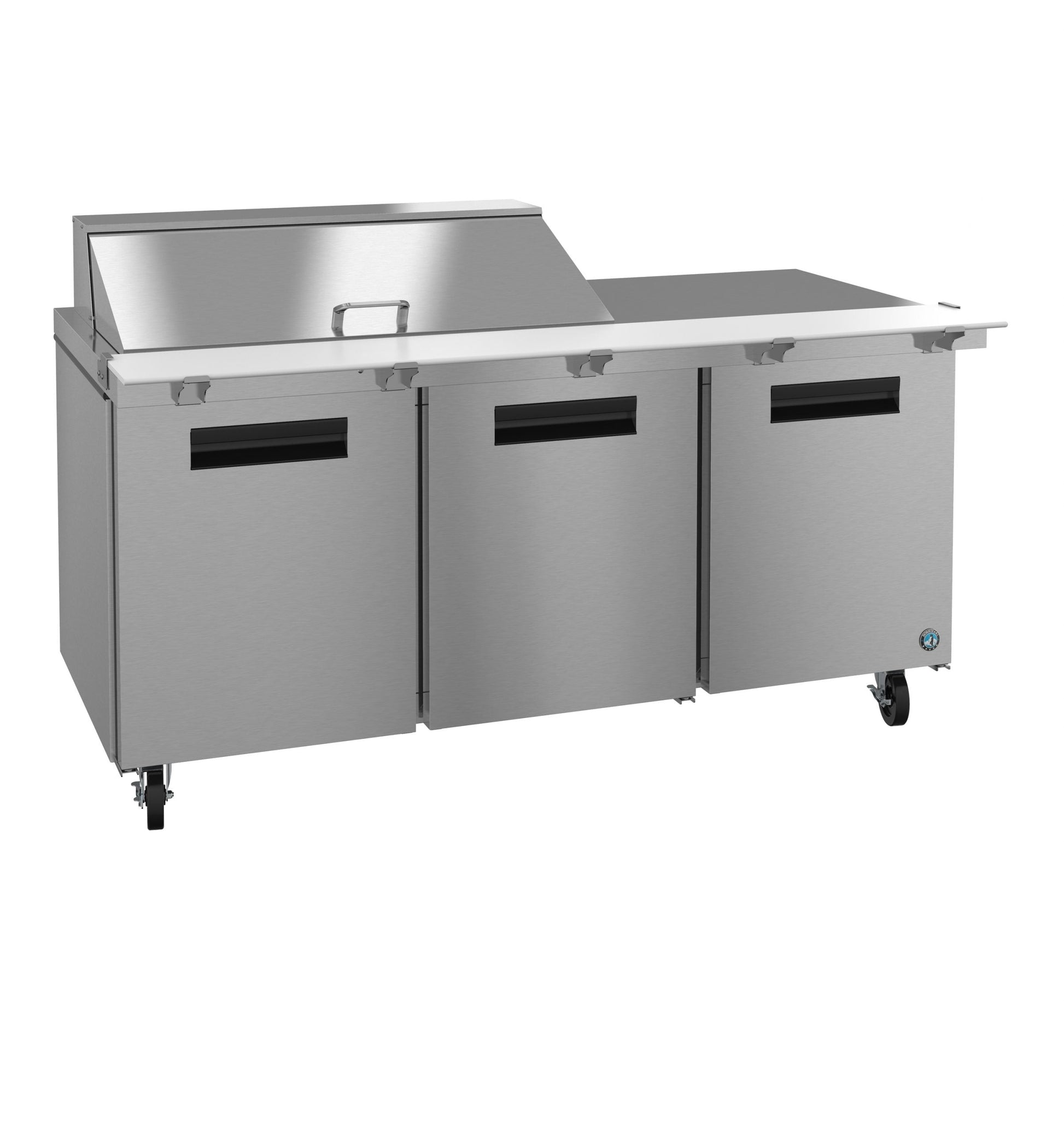 The SR72B-18M Steelheart Series Mega Top three section refrigerator with stainless doors is a space saving workhorse. Engineered to maintain food safe temperatures in 100°F ambient conditions. With a net capacity of 18 cubic feet this efficient mega top refrigerator and front air flow design is perfect for hot/tight kitchens. The SR72B-18M is constructed of stainless steel, which protects this unit from accidental damage and rust. Plus, it is easy to clean.