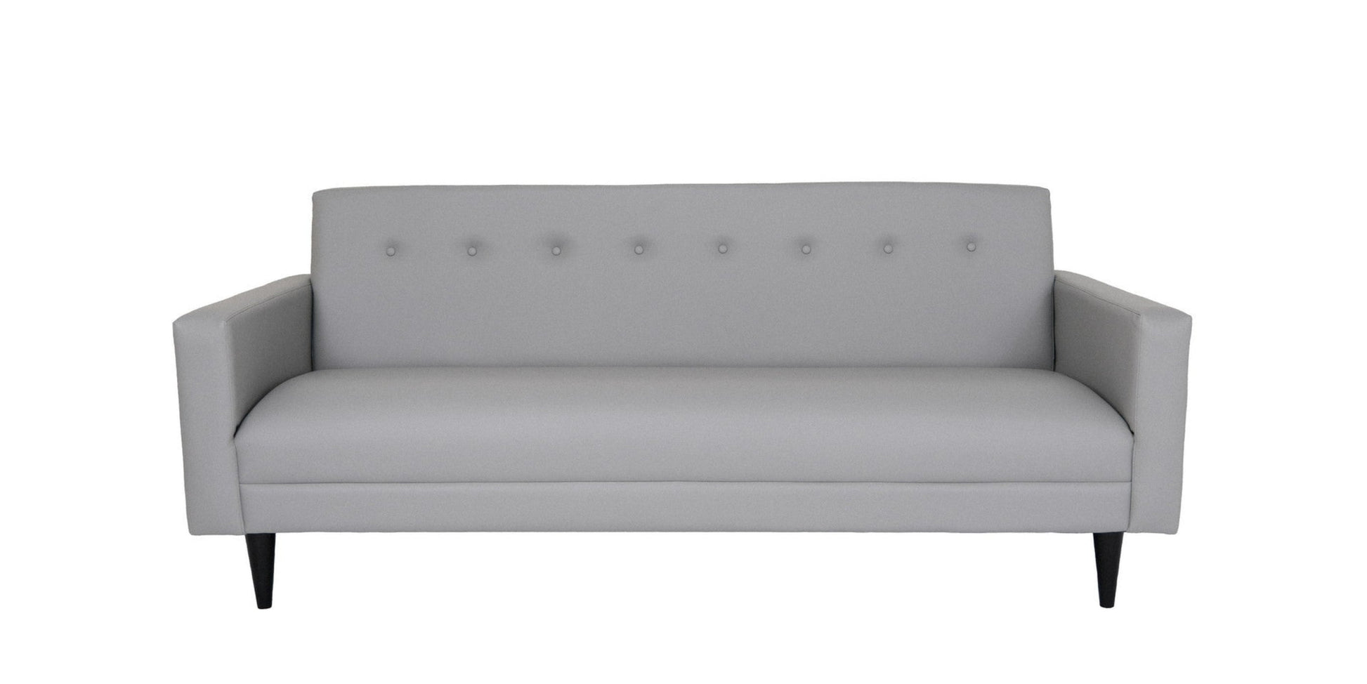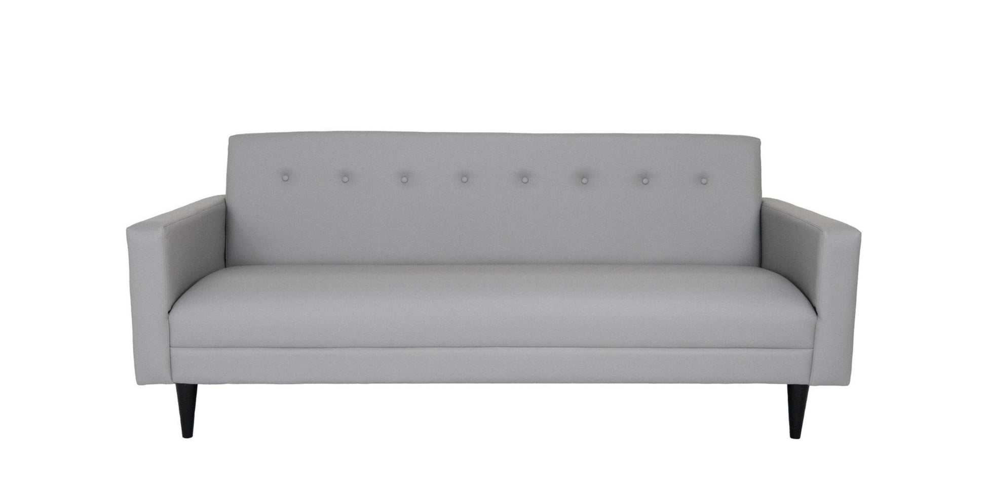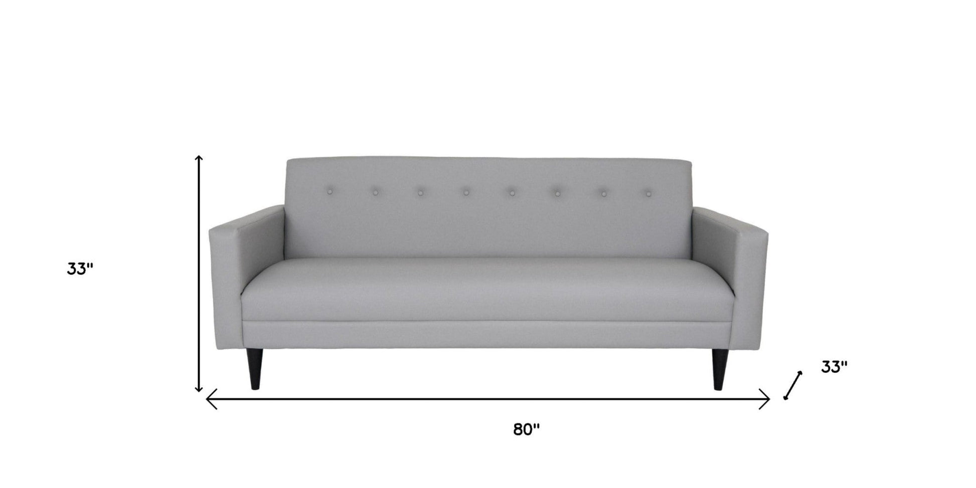 This 80-inch gray faux leather sofa with black legs is made from sturdy and resilient vinyl that will look and feel like leather. Solid colors give you lots of decorative options and are easy to work into your decor scheme. Sinuous springs construction gives this piece strong support and makes it comfortable to sit even for long periods of time. Square arms offer a comfy place to rest. Black solid wood legs effortlessly elevate the room and add a touch of contemporary design. A great showpiece for your room, this sofa is a must have. 33-inch H x 80-inch W x 34-inch D