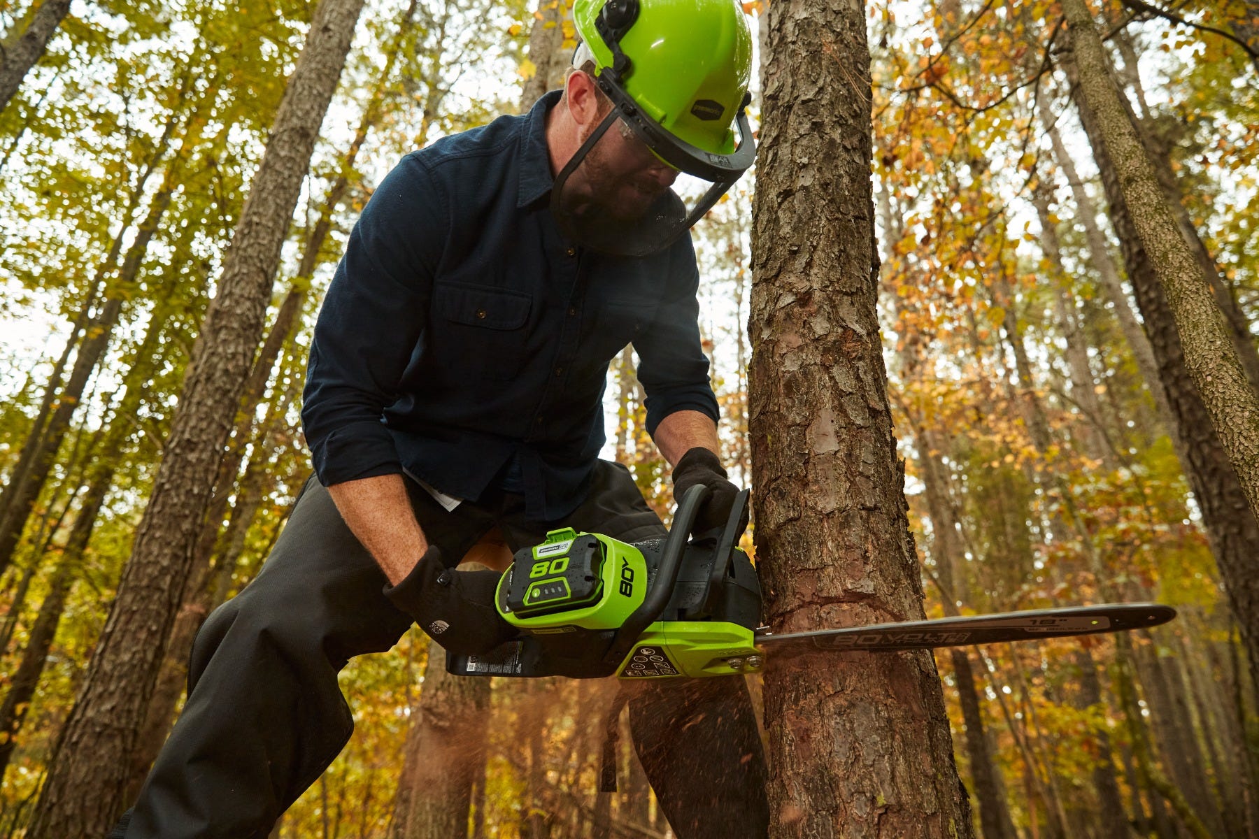Get the equivalent power of a 45cc gas engine without the hassle of gas and fumes. The Greenworks Pro 80V 18" Brushless Cordless Chainsaw starts easily and one 4.0 Ah battery charge can make up to 150 cuts through 4" x 4" pressure treated lumber. The Greenworks Pro 80V lineup features over 75 high-performance Pro 80V tools, allowing you to ditch your gas tools for an innovative, eco-friendly alternative.