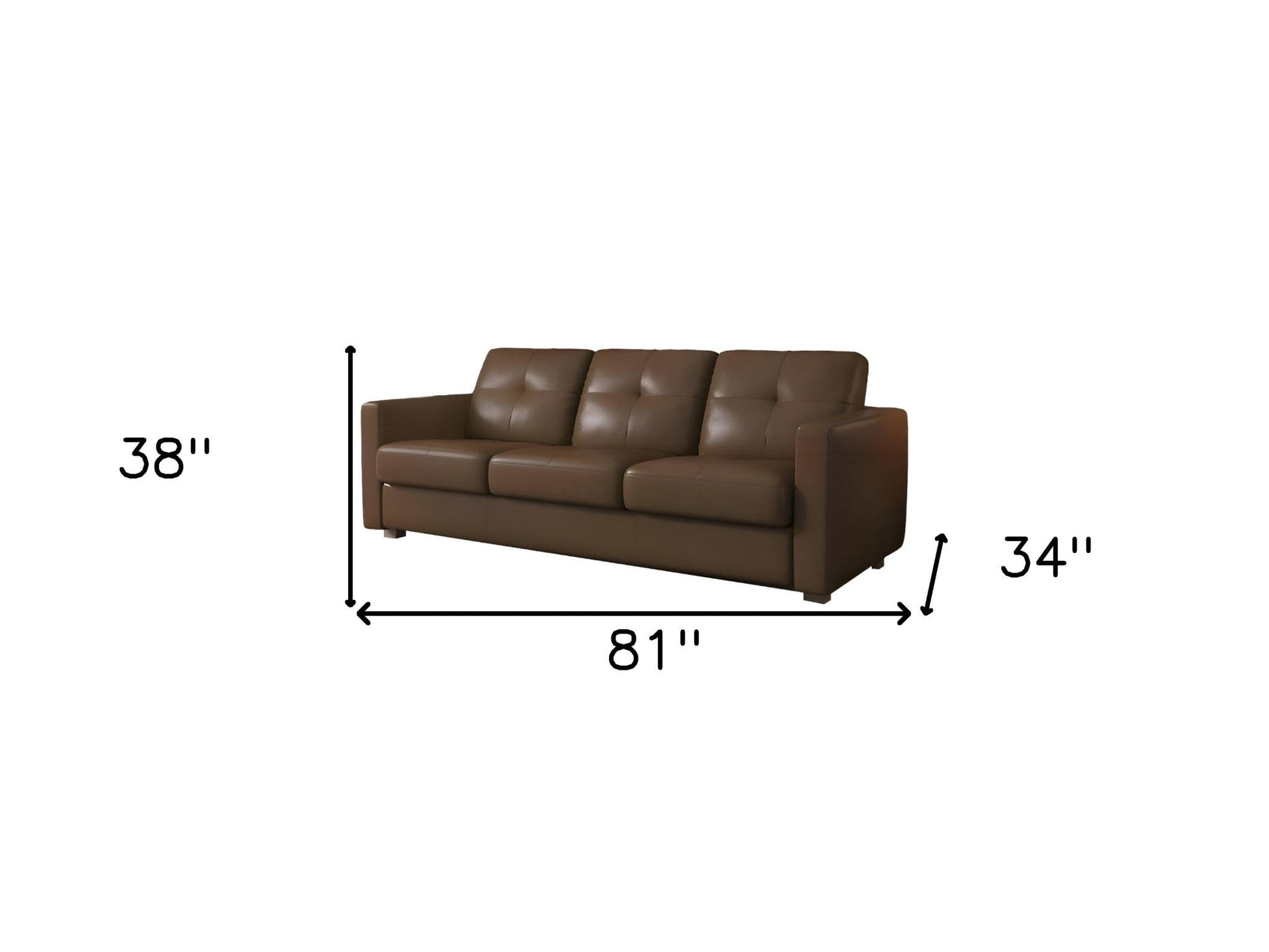 Superior construction from fabulously soft and high grade leather gives this 81-inch brown leather sleeper sofa with black legs a leg up on the competition. The premium leather used makes your lounging luxuriously comfortable and adds an elegant appeal to your space. Solid colors give you lots of decorative options and are easy to work into your decor scheme. Sinuous springs construction gives this piece strong support and makes it comfortable to sit even for long periods of time. Square arms offer a comfy place to rest. Designed with an updated and refreshing style, this sofa is armless to create that unique contemporary or modern aesthetic. The tufted stitching pattern adds visual interest and fine designer detailing. A great showpiece for your room, this sofa is a must have. 38-inch H x 81-inch W x 34-inch D