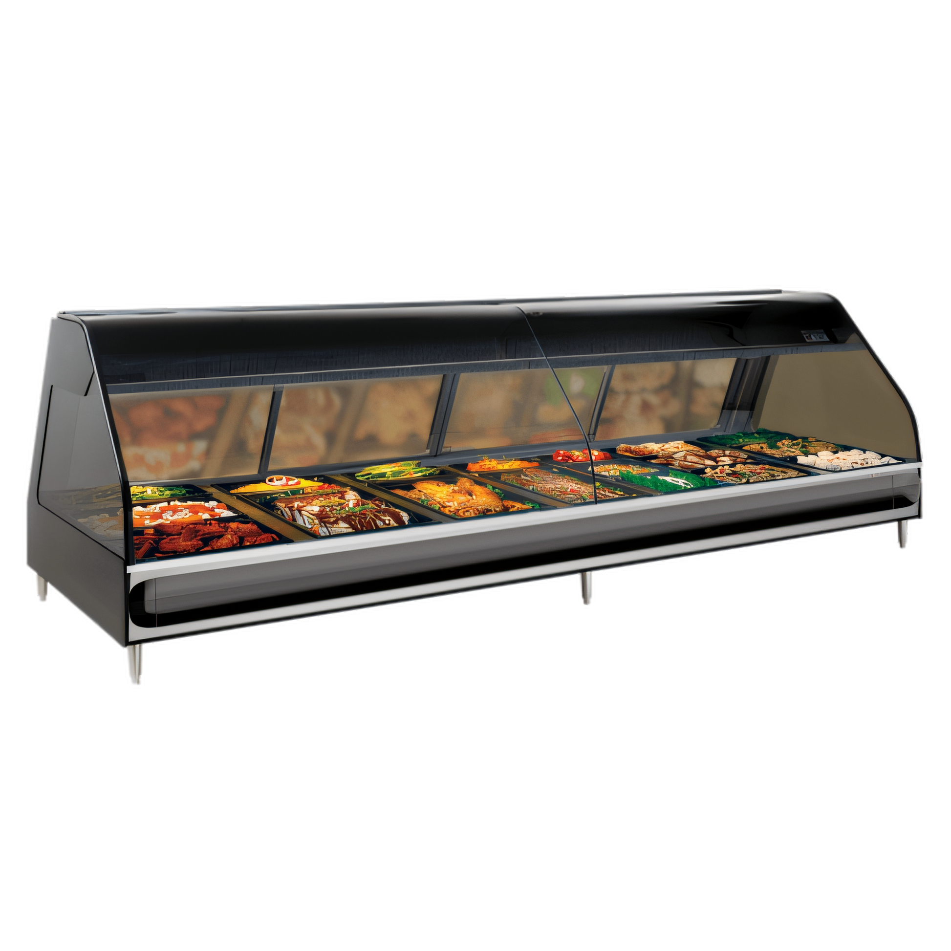 Showcase, merchandise and hold a full buffet line of hot entrées in one sleek 96-inch footprint. Alto-Shaam’s fan-free Halo Heat® technology gently surrounds food with even radiant warmth, keeping menu items fresh and flavorful for hours while brilliant LED lighting and a mirrored back boost visual appeal and impulse sales.