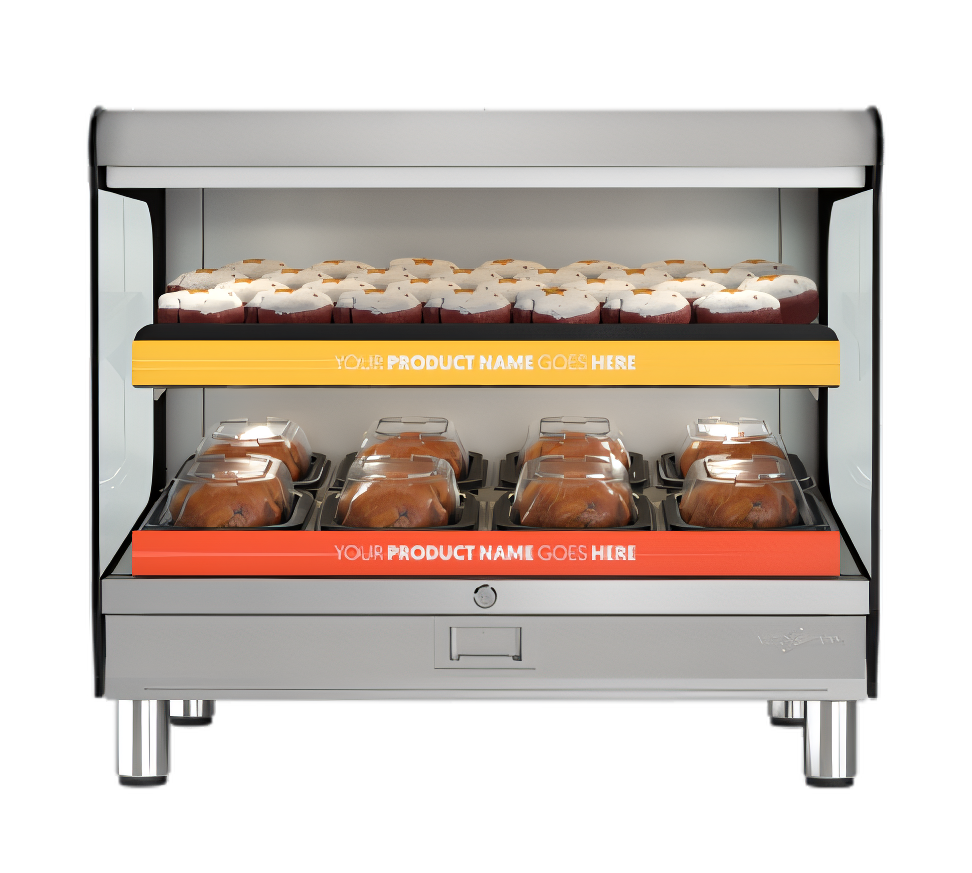 A: Combines gentle Halo Heat holding with a compact merchandising footprint, balancing performance and presentation.