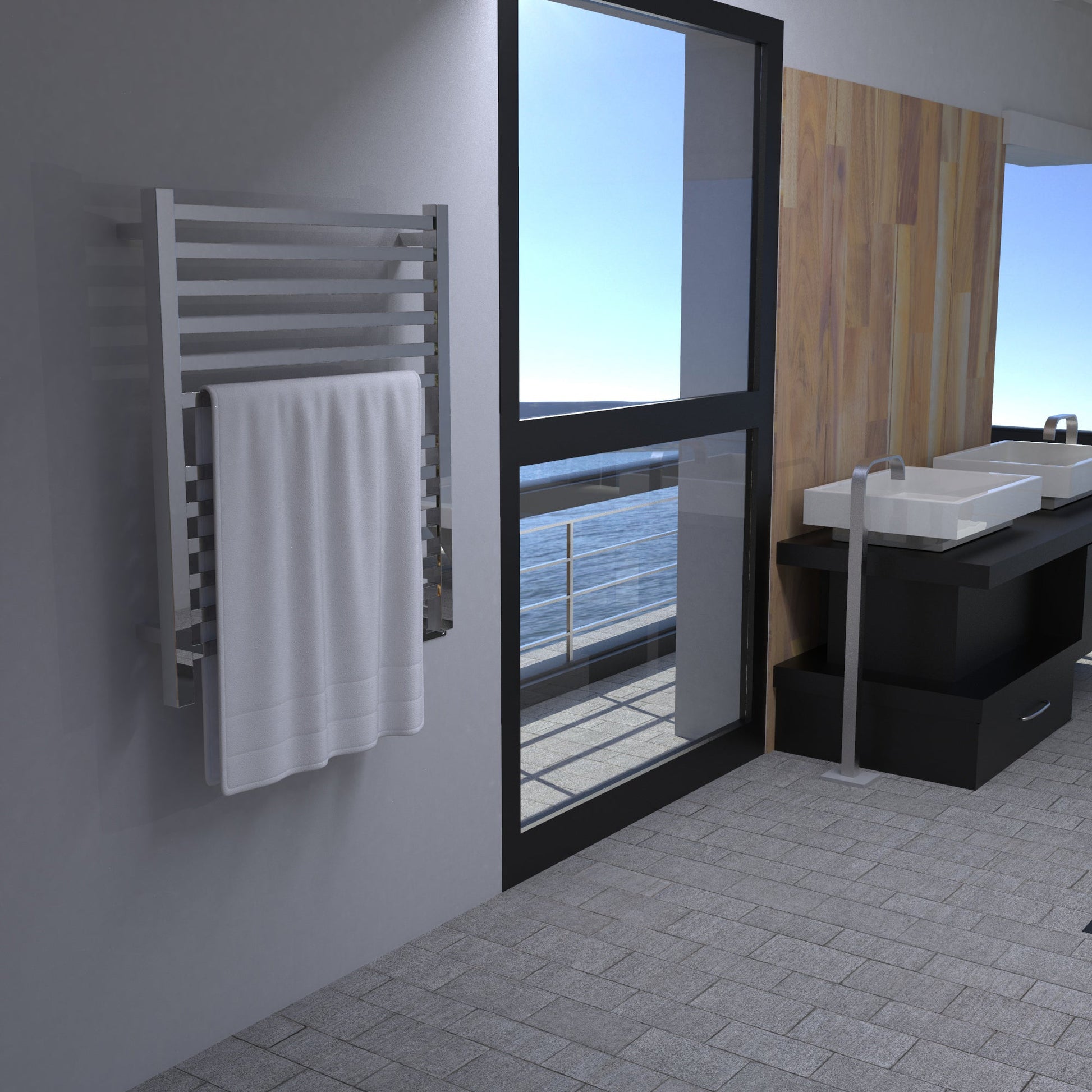 Compact & Efficient: The Amba Q2833 Heated Towel Rack stands at 33 1/4″, offering a perfect balance of size and functionality for smaller or more minimalist bathrooms.