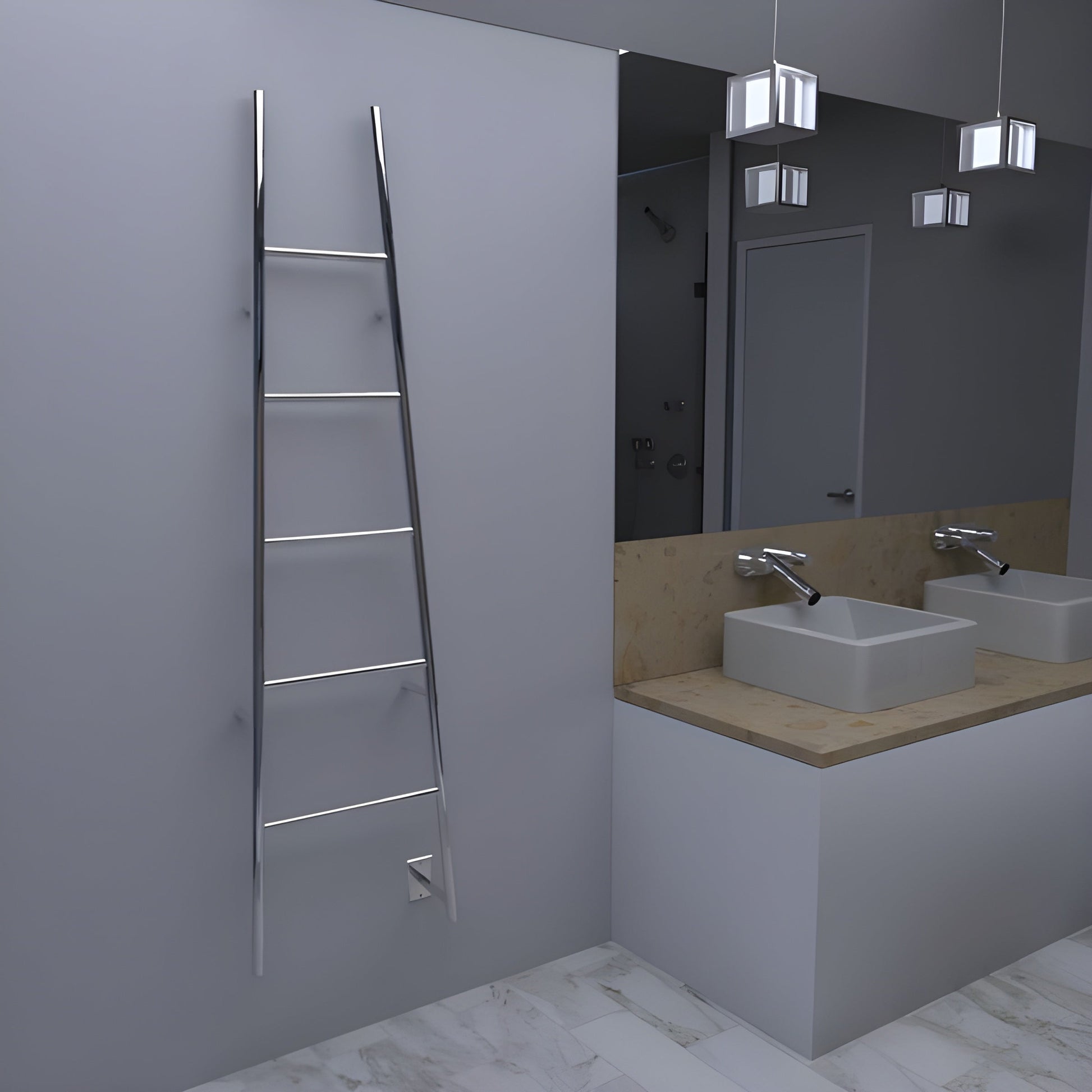 A: The Amba Jeeves Model A Ledder is designed to warm and dry towels efficiently while adding a stylish and modern ladder-like design to your bathroom or spa.
