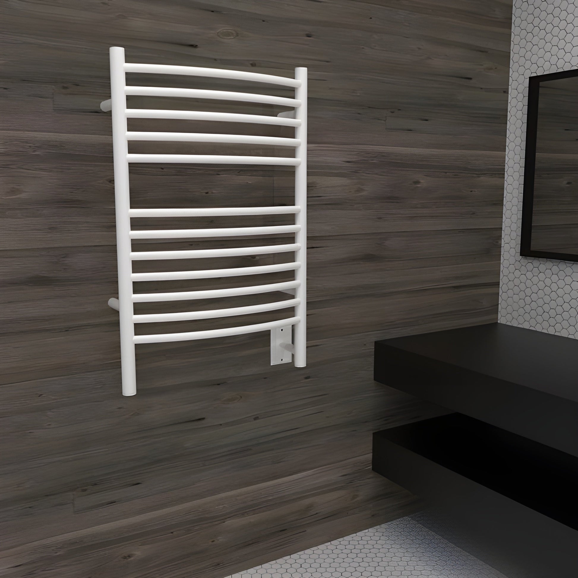 The Amba Jeeves Model E Curved Towel Warmer combines functionality with elegance, making it a must-have for modern bathrooms. Here's why it stands out: