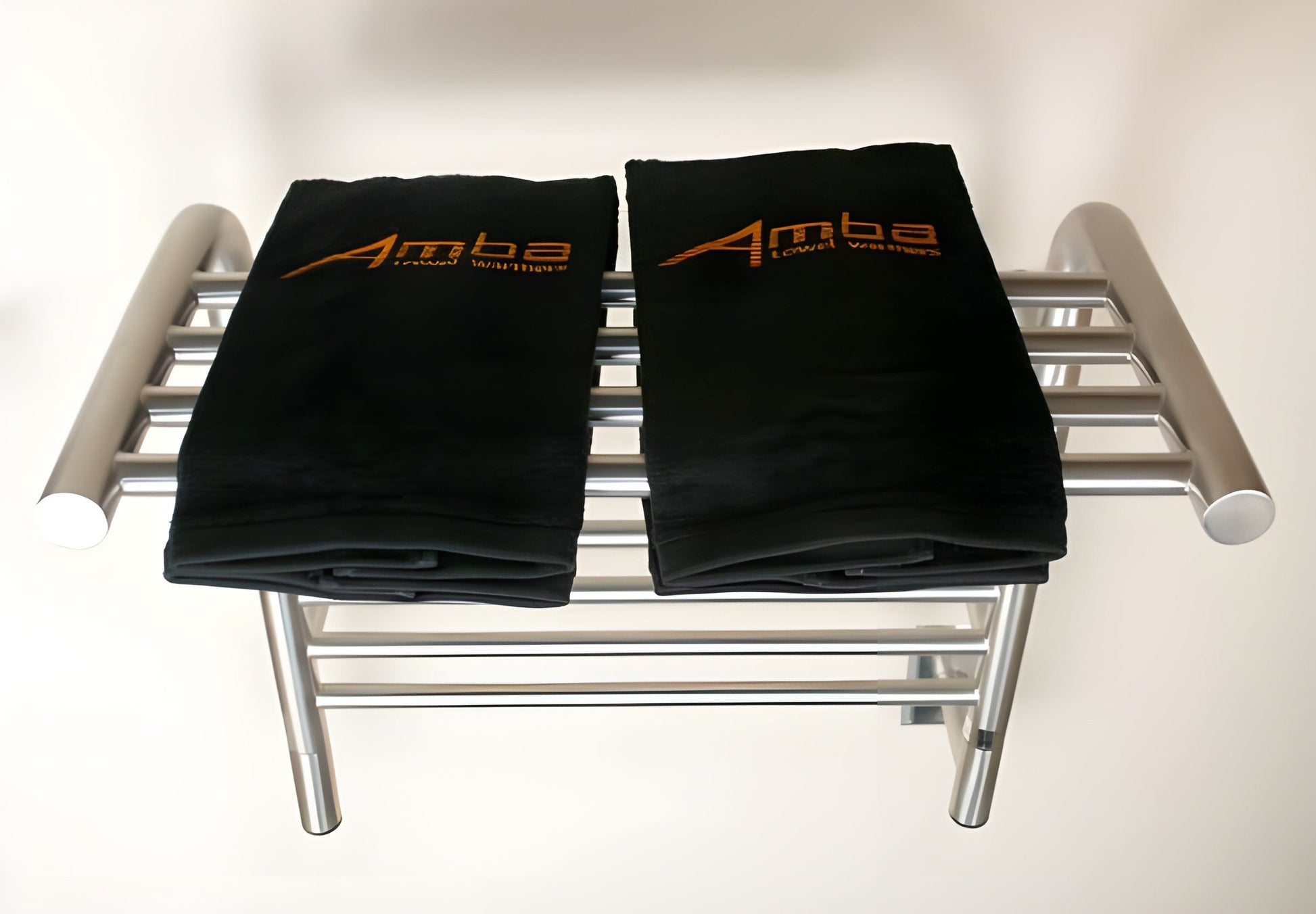 A: The Amba Jeeves Model M Shelf is designed to warm and dry towels while providing additional shelf space for added convenience, blending functionality and modern design for your bathroom or spa.