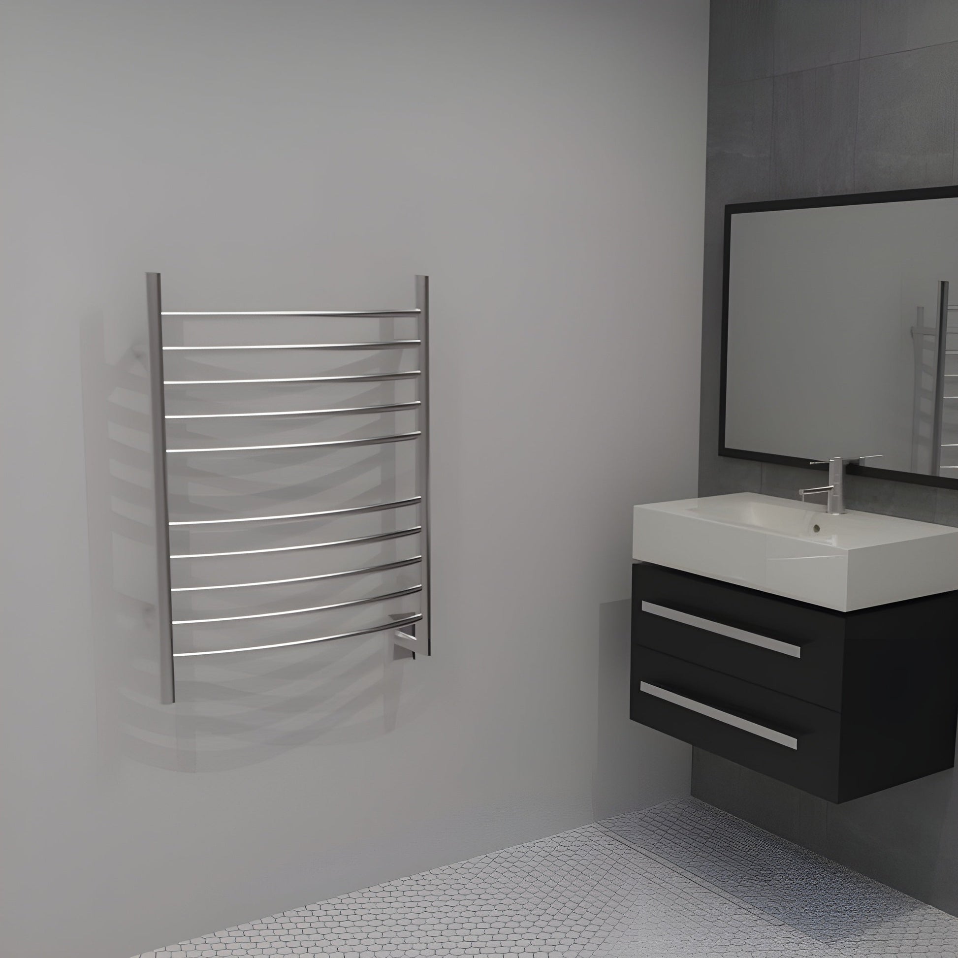 The Amba Radiant Hardwired Curved Towel Warmer combines luxurious design with efficient functionality, making it an excellent choice for modern bathrooms. Here's why it's highly recommended: