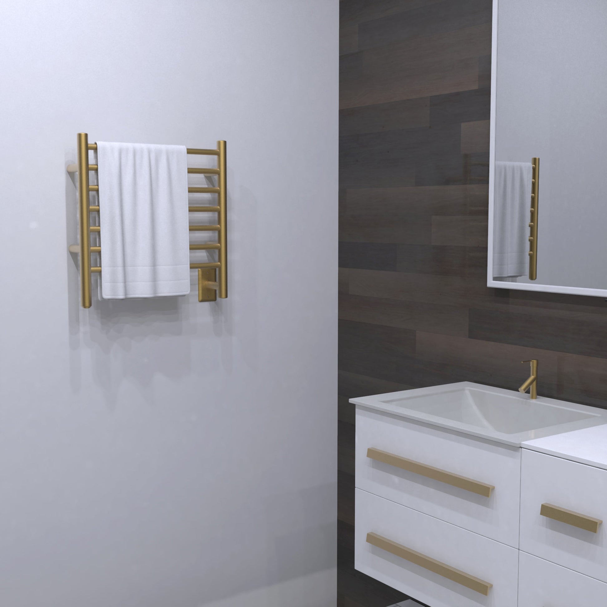 A: The Amba Radiant Small Heated Towel Rack is designed to efficiently warm and dry towels while offering a compact, modern design, perfect for smaller bathrooms or spaces with limited wall space.