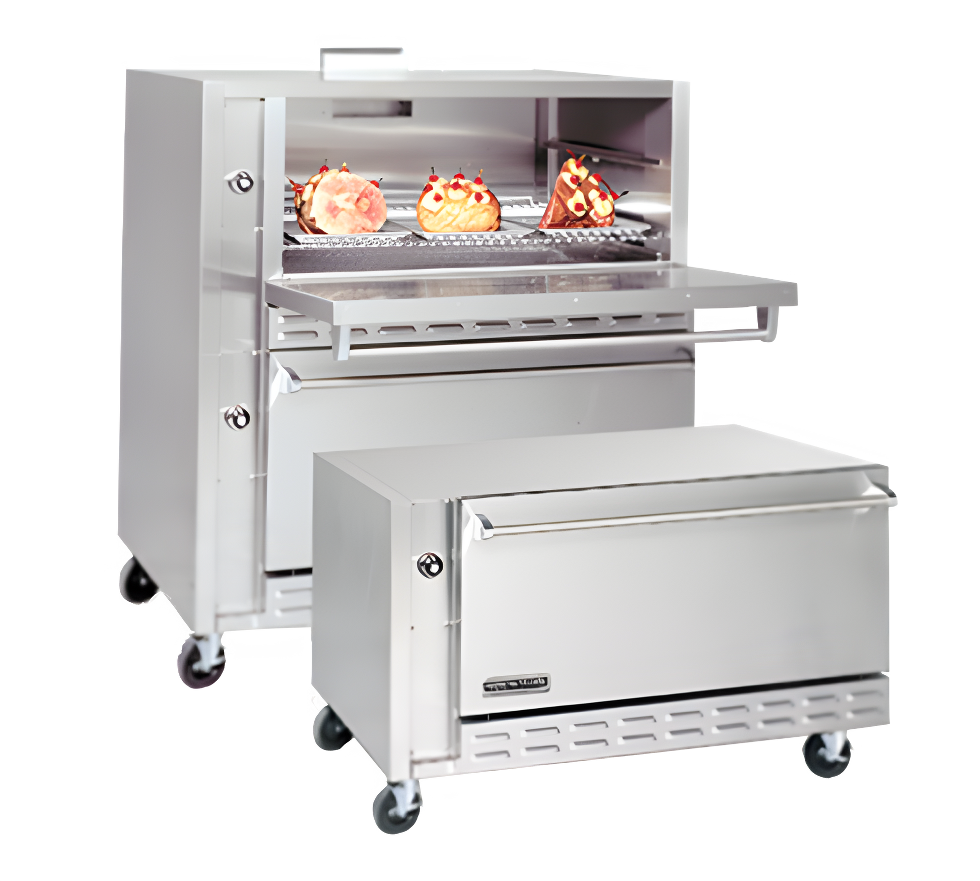 Restaurant Range Large Capacity Oven, gas, single deck, one 42" wide x 33-1/2" deep x 17" high cavity, standard oven with one wire shelf each, thermostat range 150° - 500° F, stainless steel liner, stainless steel exterior, 6" high legs, 12.0kW, 40,000 BTU, ETL, Made in USA