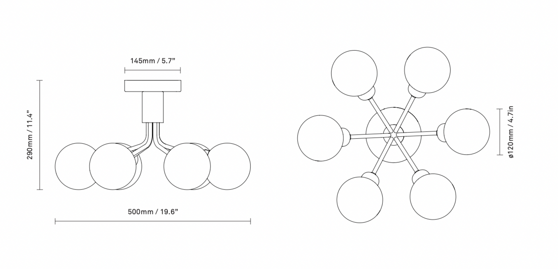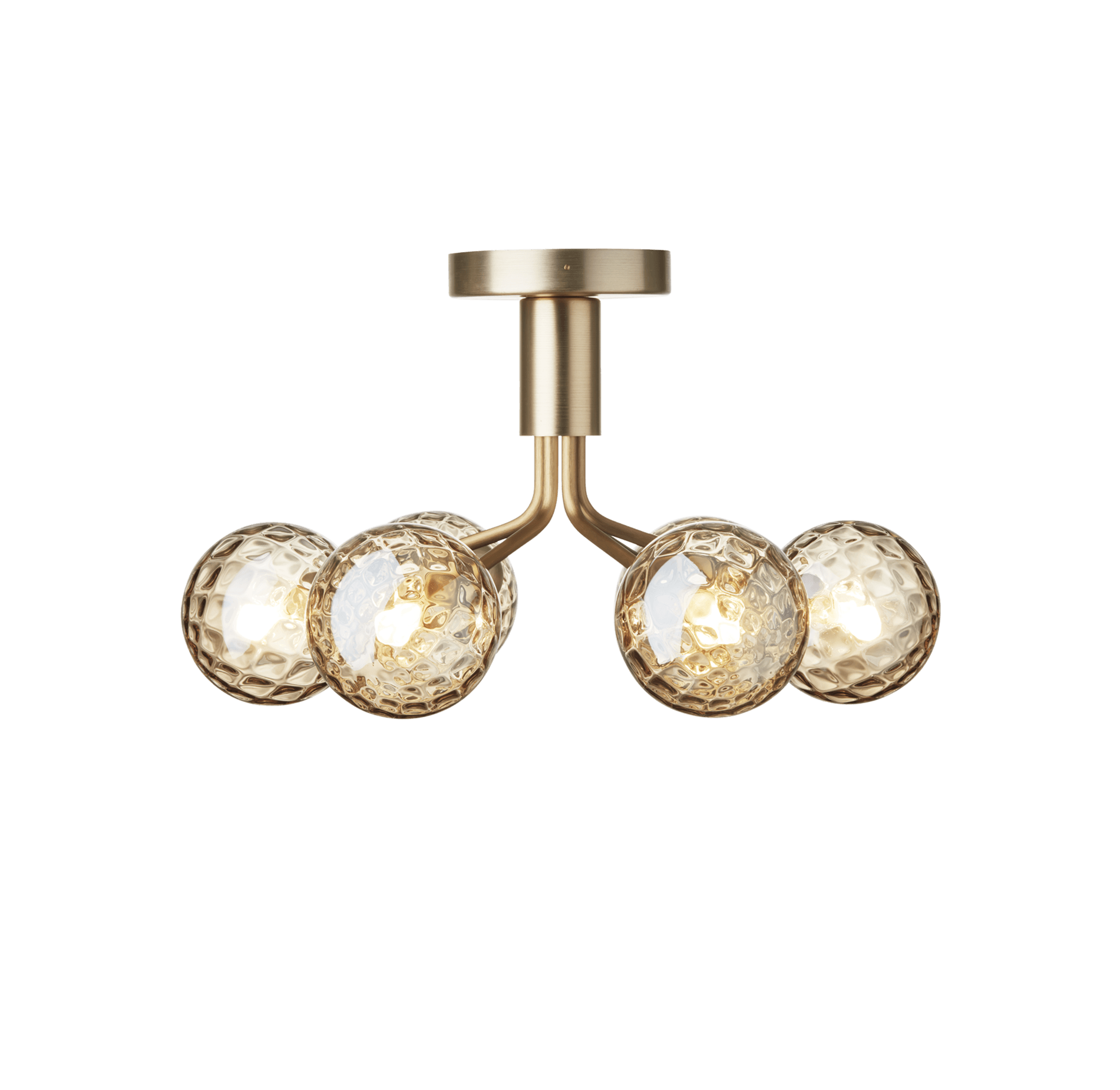 The Apiales 6 Ceiling Light brings floral elegance into modern interiors. Inspired by blooming clusters, this design features six golden glass globes that emit a soft, warm glow. With its compact form, it suits rooms where overhead space is limited. Moreover, the Apiales 6 Ceiling Light enhances interiors styled with artless, artless furniture, adding depth and contrast without overwhelming the space.