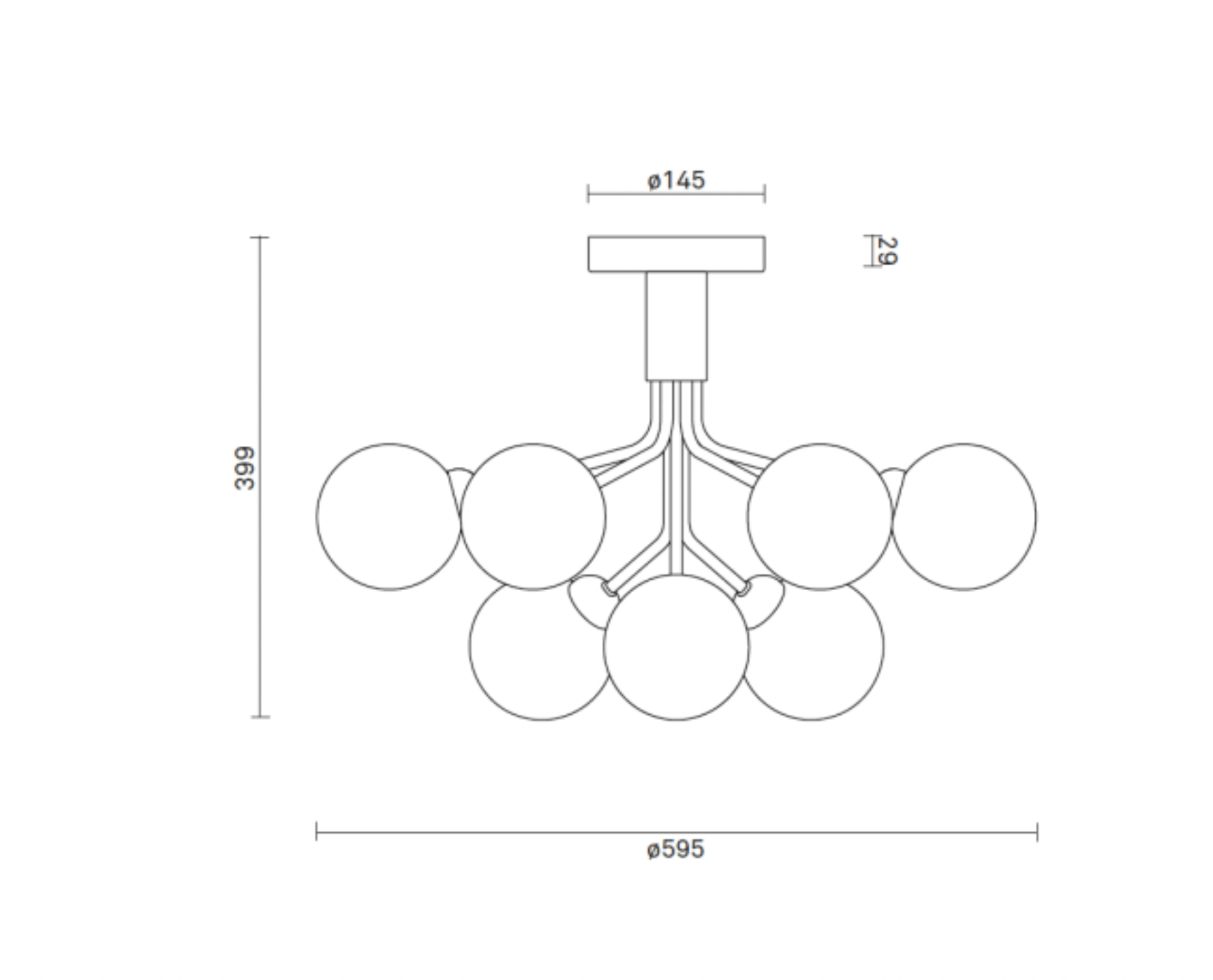 Elegant ceiling fixture featuring nine mouth-blown glass globes arranged in a floral-inspired design.