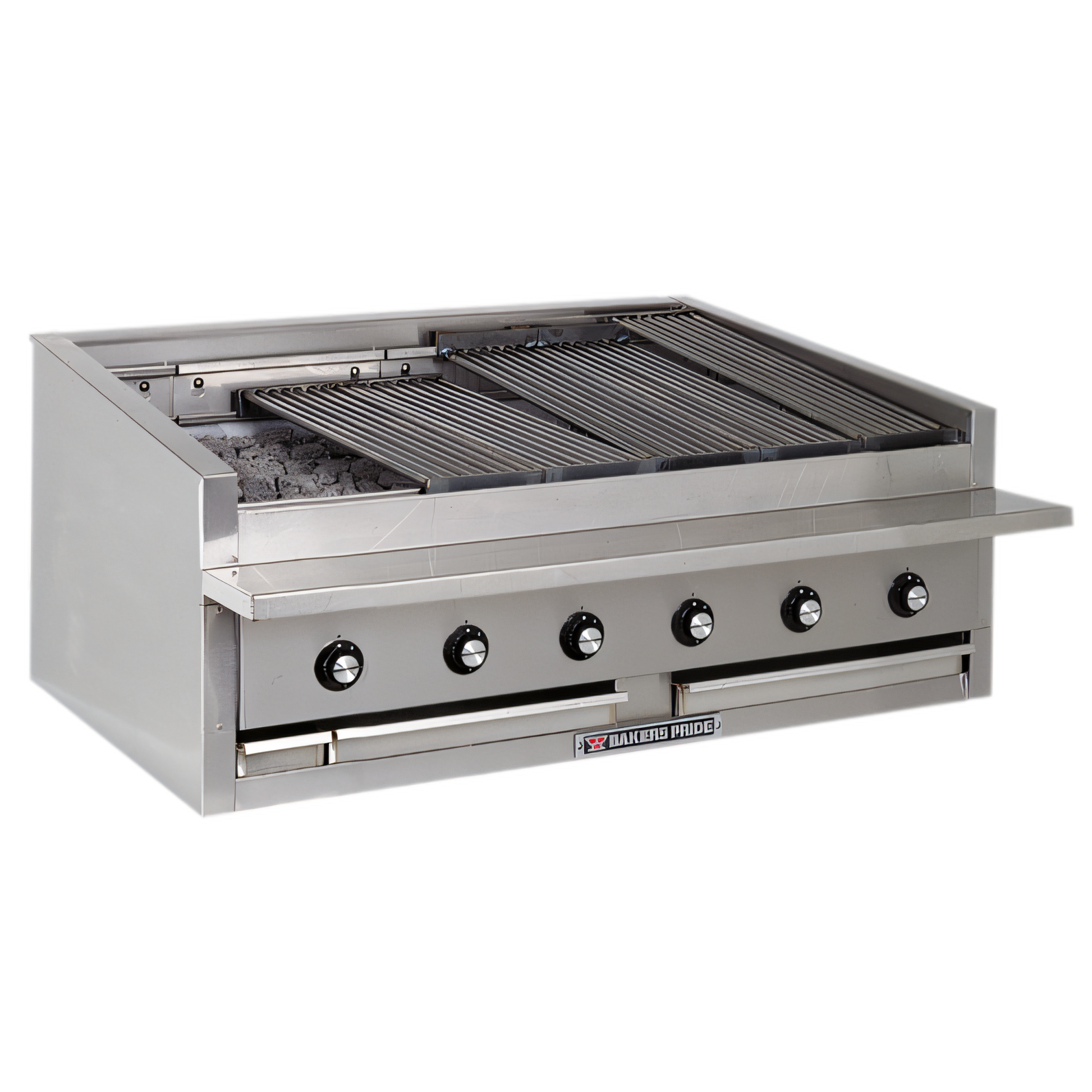 Deliver steak-house flavor from a compact countertop footprint. The 48" Dante Series charbroiler pairs Bakers Pride’s legendary build quality with ceramic Glo-Stones that vaporize drippings for authentic smoke and intense sear marks.