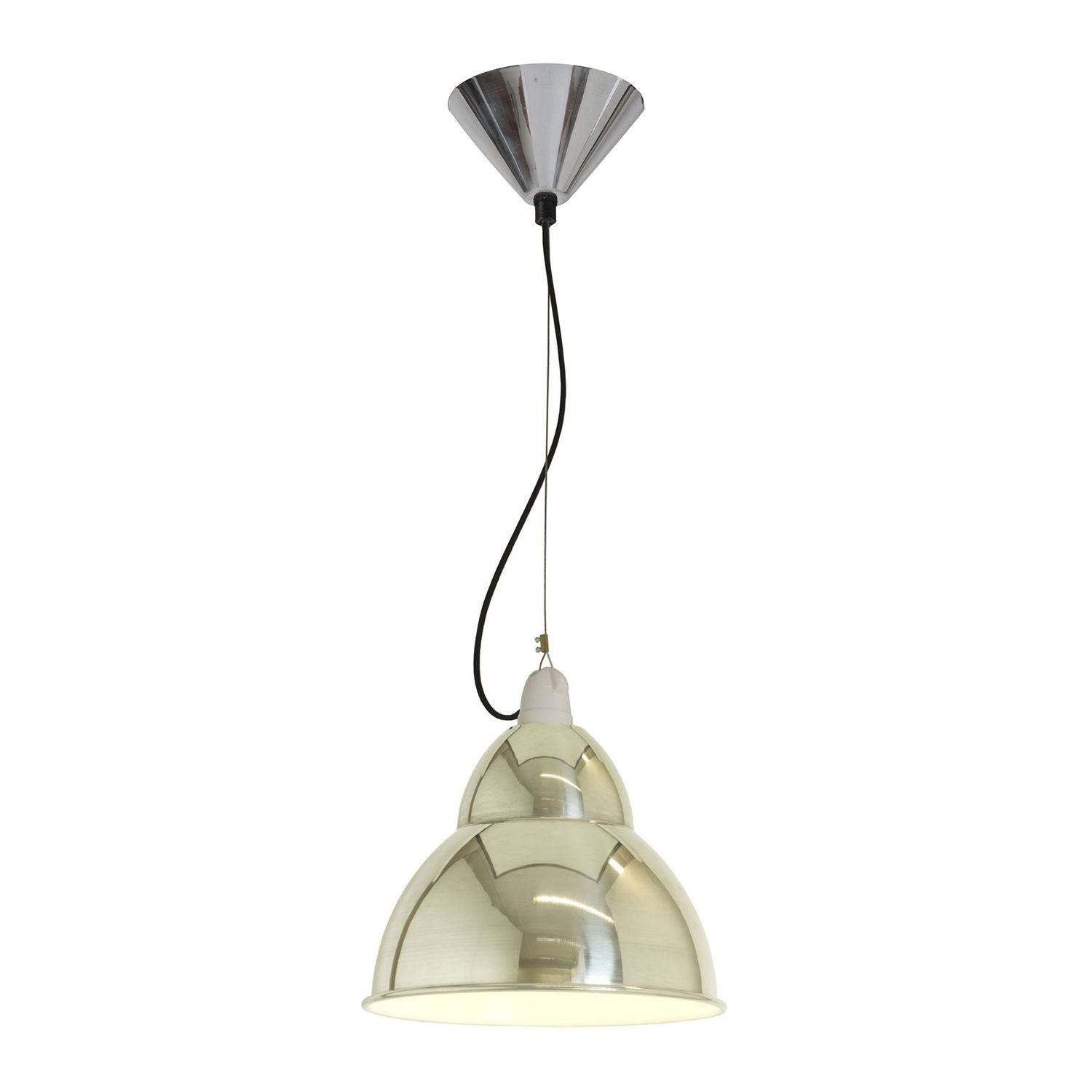 A: A classic industrial-style pendant, hand-spun in polished aluminum for a sleek, reflective finish.