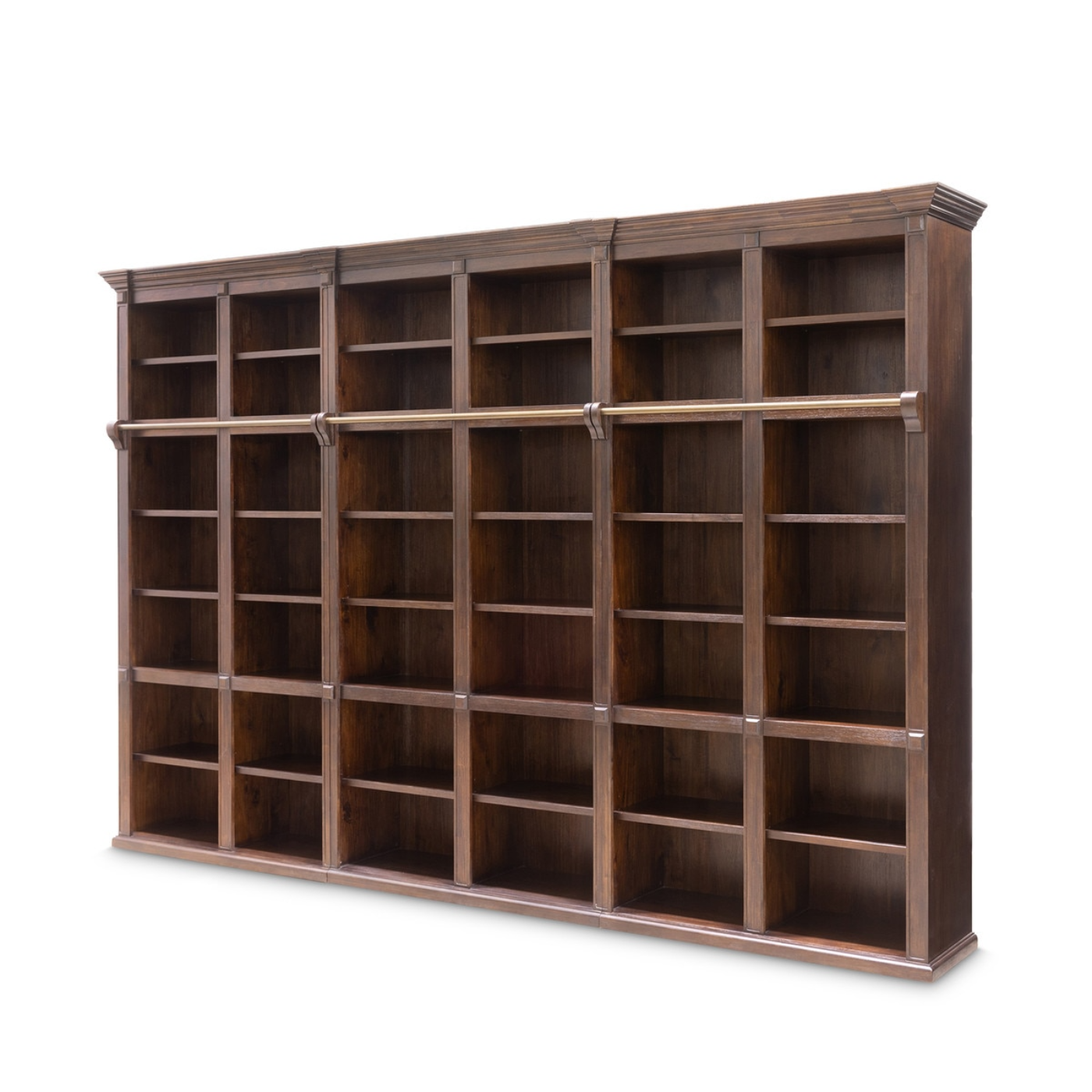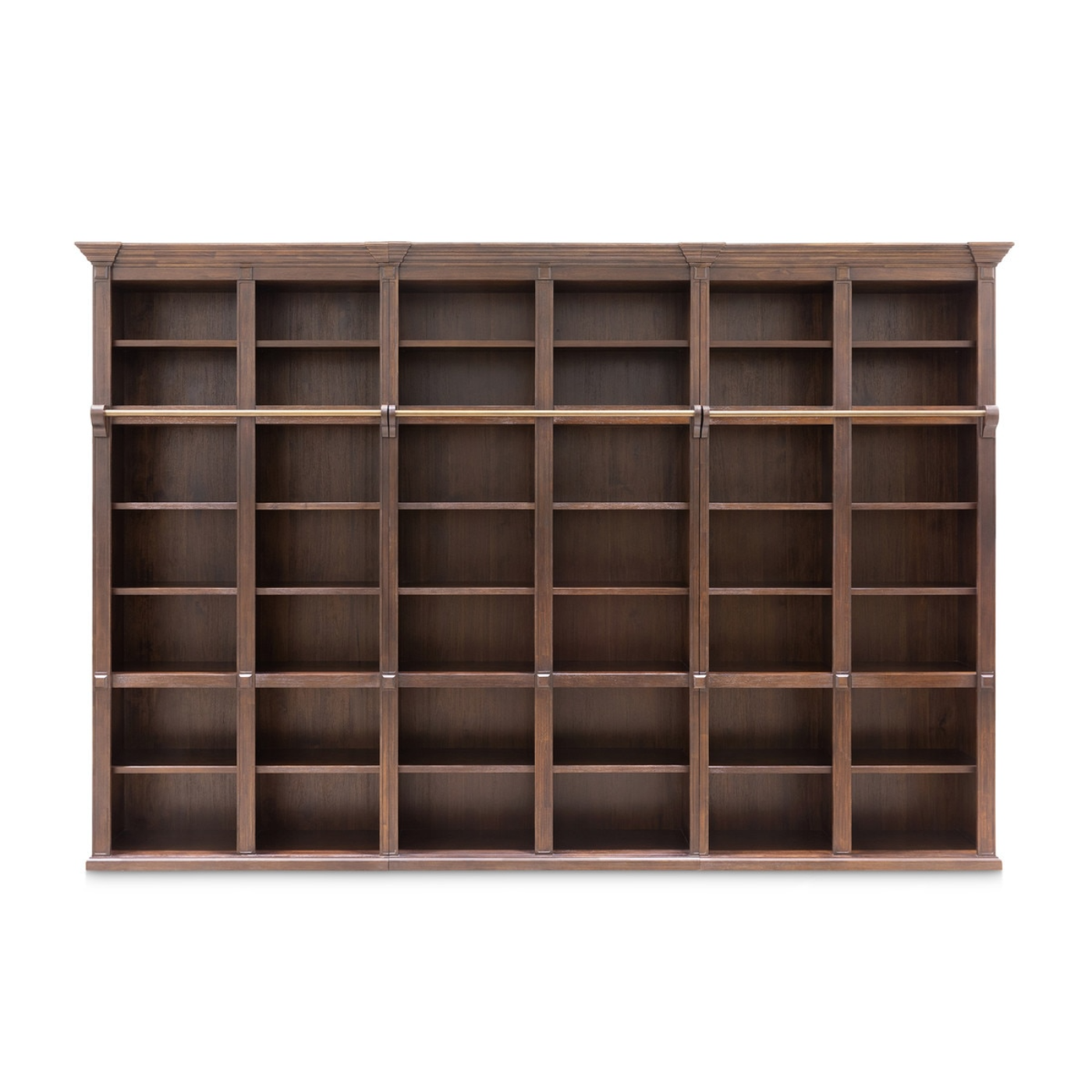Features open shelving, lower cabinets, and crown molding details—perfect for books, décor, or media essentials.