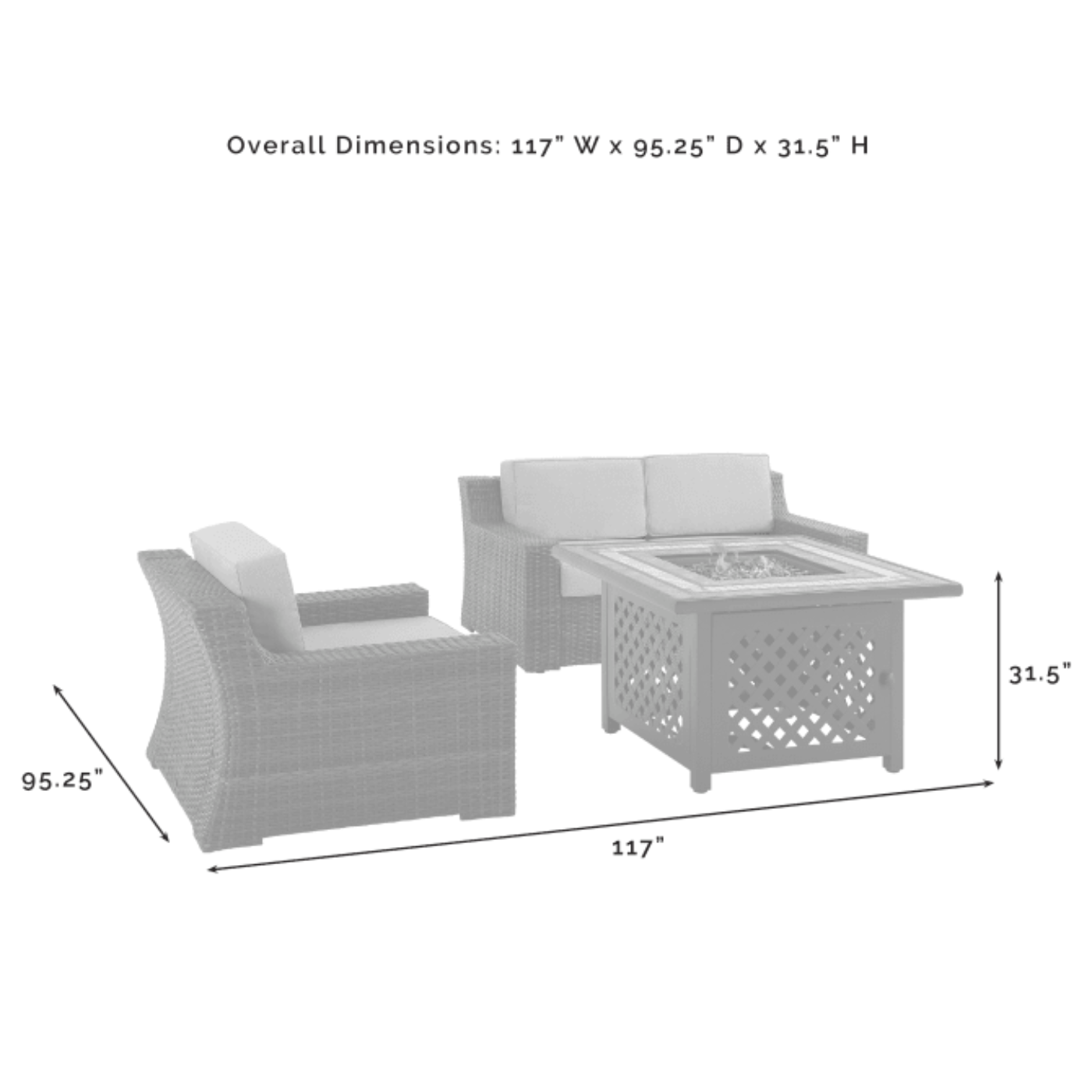 Spacious & Inviting β This 3-piece set comfortably seats up to 3 people, featuring a loveseat, a chair, and a 50,000 BTU propane-powered fire table.