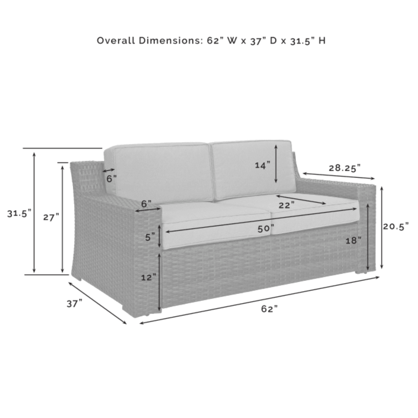 Comfortable Seating β Equipped with 5" thick seat cushions and 6" thick back cushions, upholstered in solution-dyed polyester fabric that resists mildew, sun fade, and abrasion.