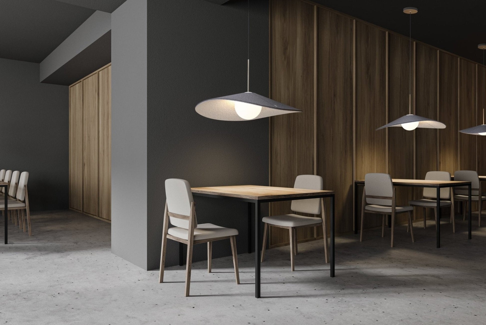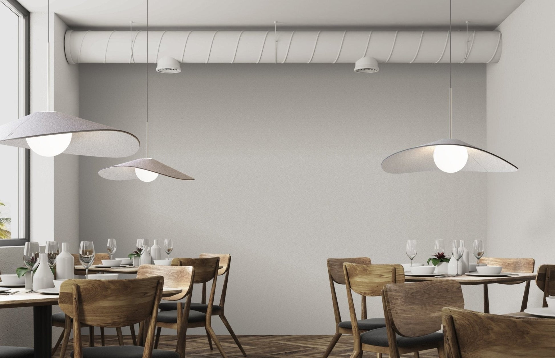 dimmable LED light that runs cool to the touch. Bola can be suspended individually, or in spectacular groupings to become the centerpieces of any space. Bola’s thick felt shade also offers excellent acoustical properties making them perfectly suited for use over dining applications as well as social gathering areas where sound control is beneficial. Ideal for residential, lounge and hospitality spaces alike.