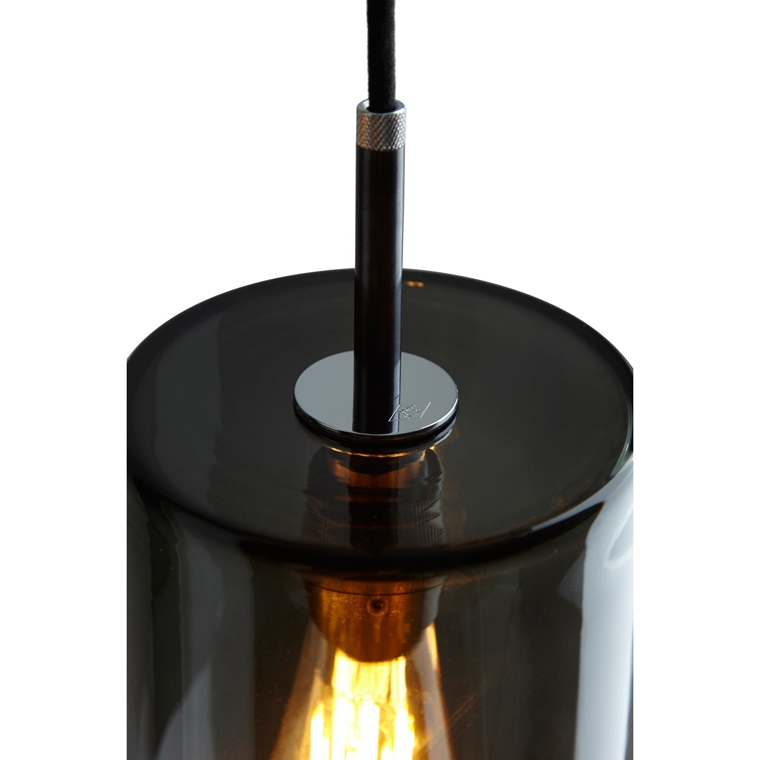 The Brompton combines simplicity with elegance. The smooth anthracite glass shade has a classical cylindrical shape, which is hand blown in our glass factory in England. Available in three sizes, the Brompton has a weathered brass ceiling rose and attractive chrome detailing on the chord grip. Pair it with our squirrel cage light bulb, to create an enhancing and illuminating glow.