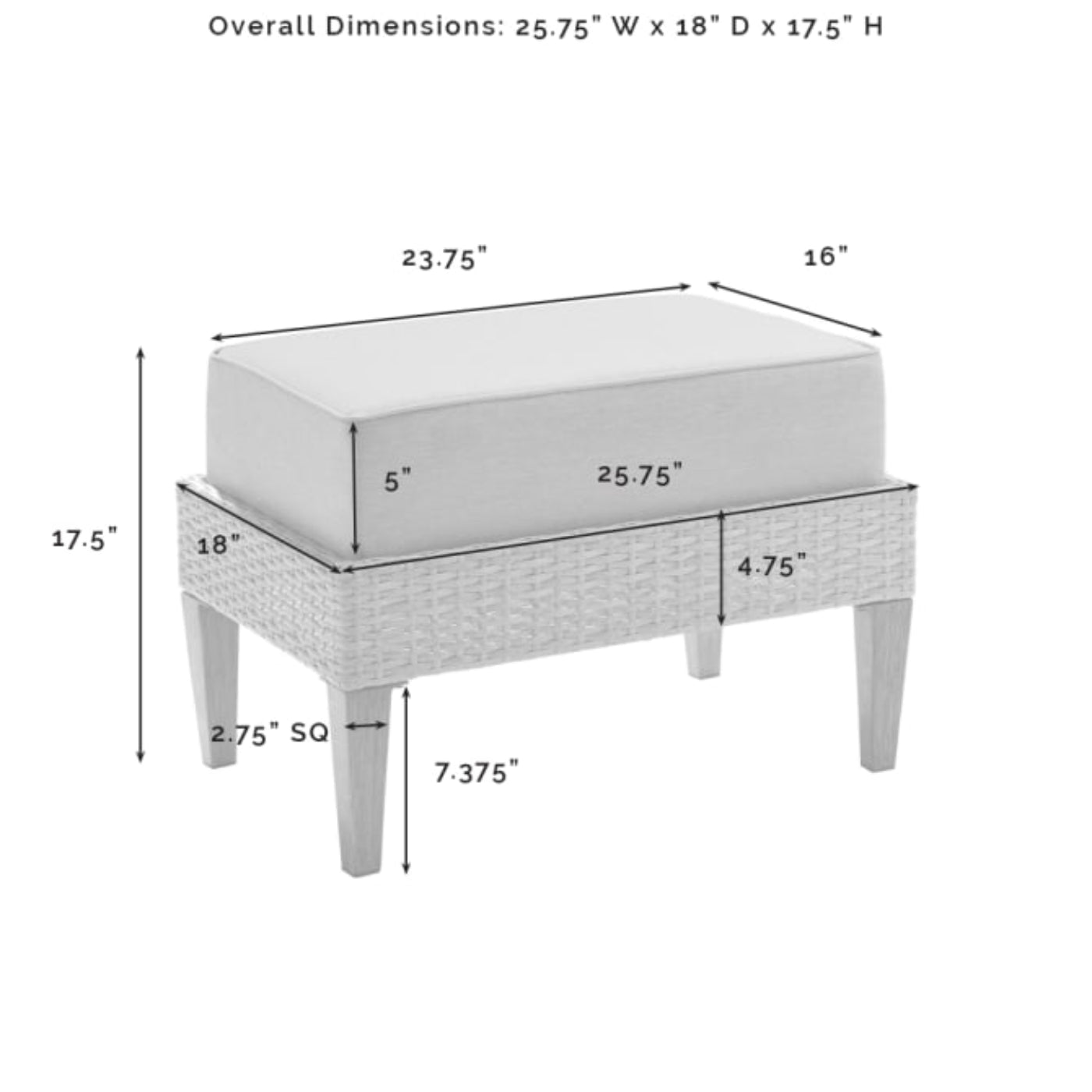 Prop up your feet and relax with the laid-back Cali vibe of the Capella 2pc Ottoman Set. Blending cool neutral tones with natural finishes, this set of ottomans is a chic upgrade to your outdoor space. For added durability, the classic tapered legs are made from sturdy steel hand-painted to look like real wood. With all-weather resin wicker and quick-drying olefin fabric, the Capella ottomans are great for added seating, or comfortable footrests.