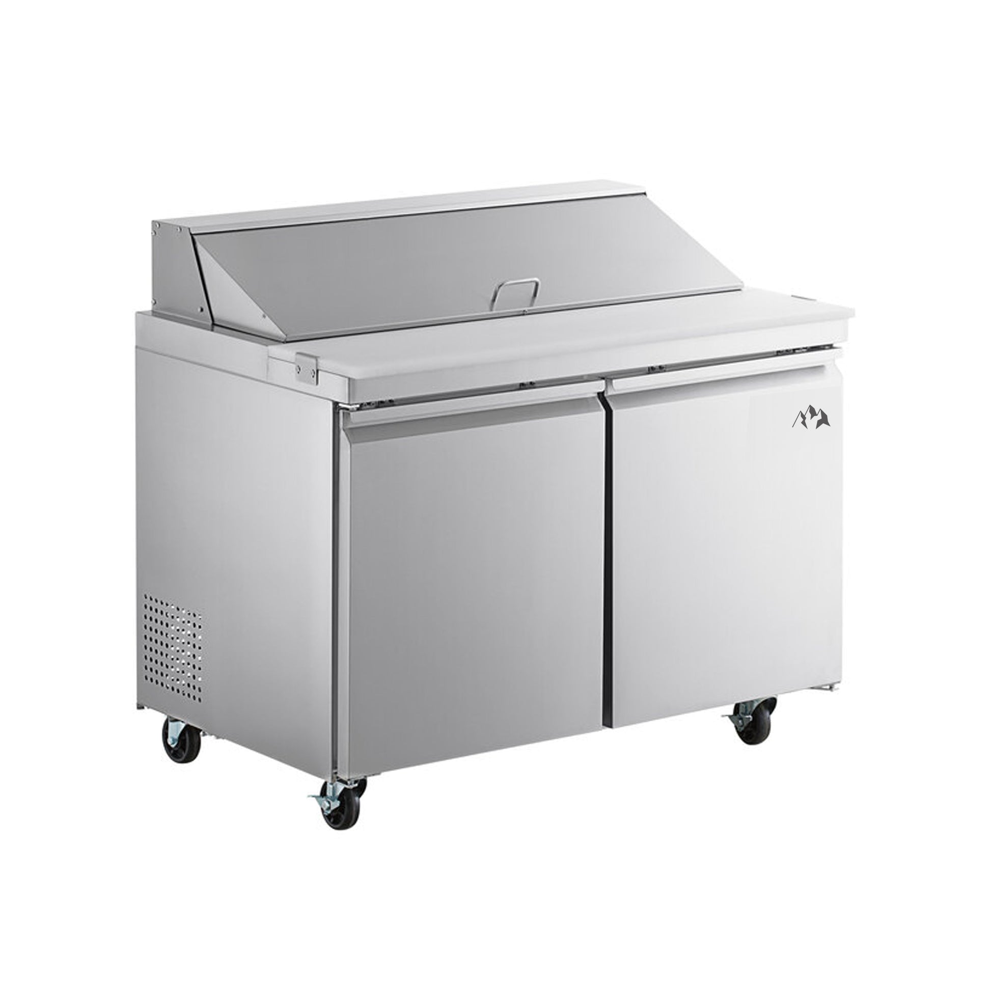 Spacious Prep Table: 46″ wide with 12-pan capacity—perfect for sandwich and salad prep.