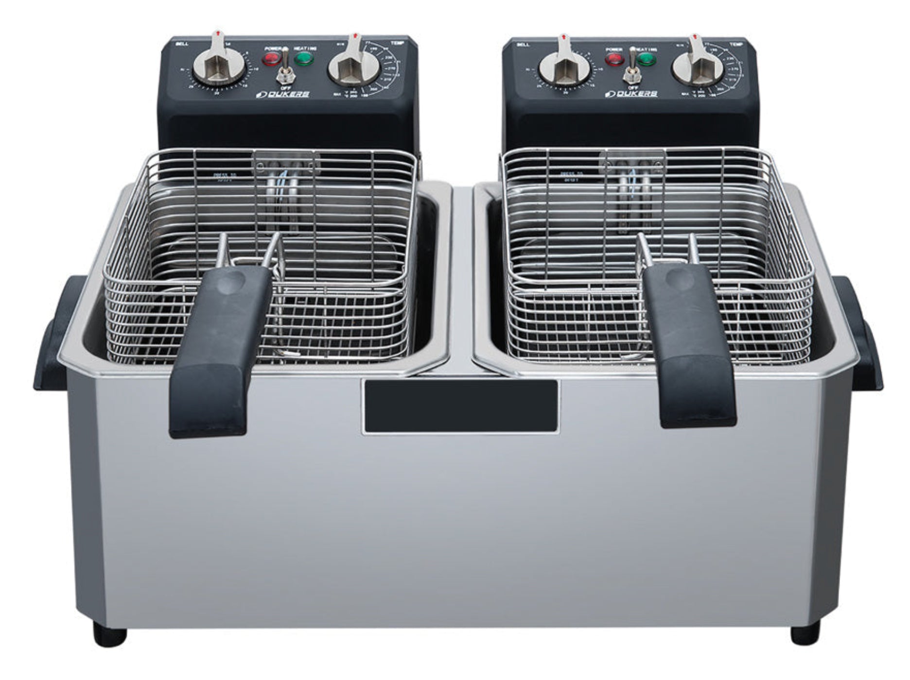 The Chef AAA TCF15ED Two Basket Electric Countertop Fryer offers efficient frying capabilities for commercial kitchens. With a capacity of 15lbs per basket and two baskets, it provides ample space for frying a variety of foods simultaneously. Its stainless steel furnace body ensures durability and efficient heat distribution, while the fast heating speed and uniform temperature promote energy savings. The fryer features a novel design, convenient operation, and humanized cooking experience. Equipped with a power button switch to prolong the thermostat's life, constant temperature heating, warm timing tips, and over-temperature protection, it ensures safe and easy operation. The thickened stainless steel oil basin enhances structural strength and durability. Additionally, it automatically stops heating when reaching the set temperature and restarts when below, ensuring precise temperature control. With dimensions of 26" x 19" x 12", it's suitable for countertop placement in various kitchen setups.