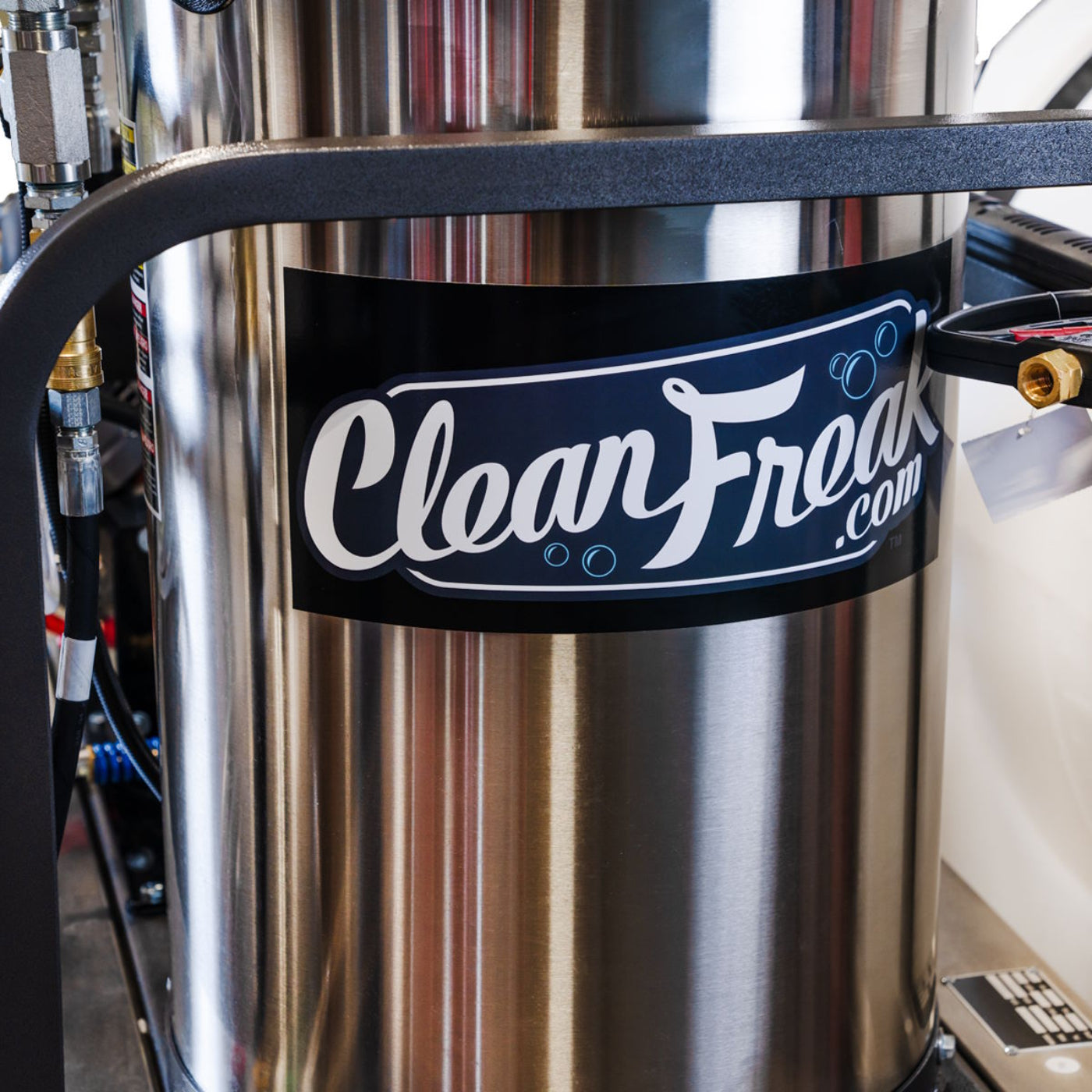 This high volume cleaning system is great for cleaning jobs faster than ever, especially paired with something like a 21" or 24" flat surface cleaner. The skid comes with a 225 gallon water storage tank mounted to it for constant water supply to the pump. The tank is fed by a 50' hose on a stainless reel. The 8 GPM at 3500 PSI water is heated by a diesel fired burner system, with adjustable thermostat temperature control. The high pressure is delivered through a 100' hose stored on a matching stainless hose reel to the spray gun.
