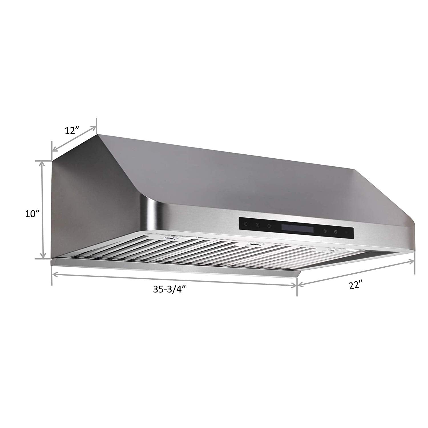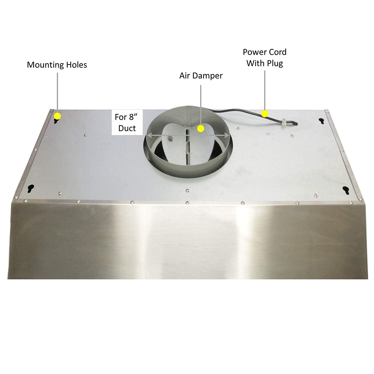 - SUPREME SERIES 10” HIGH, 8” ROUND TOP VENT, 1mm THICK - under cabinet, high quality 1 mm thick stainless steel with brush finishing. Recommended installation height of the range hood is 27”, minimum should be 24” and the maximum should be no more than 30”.
