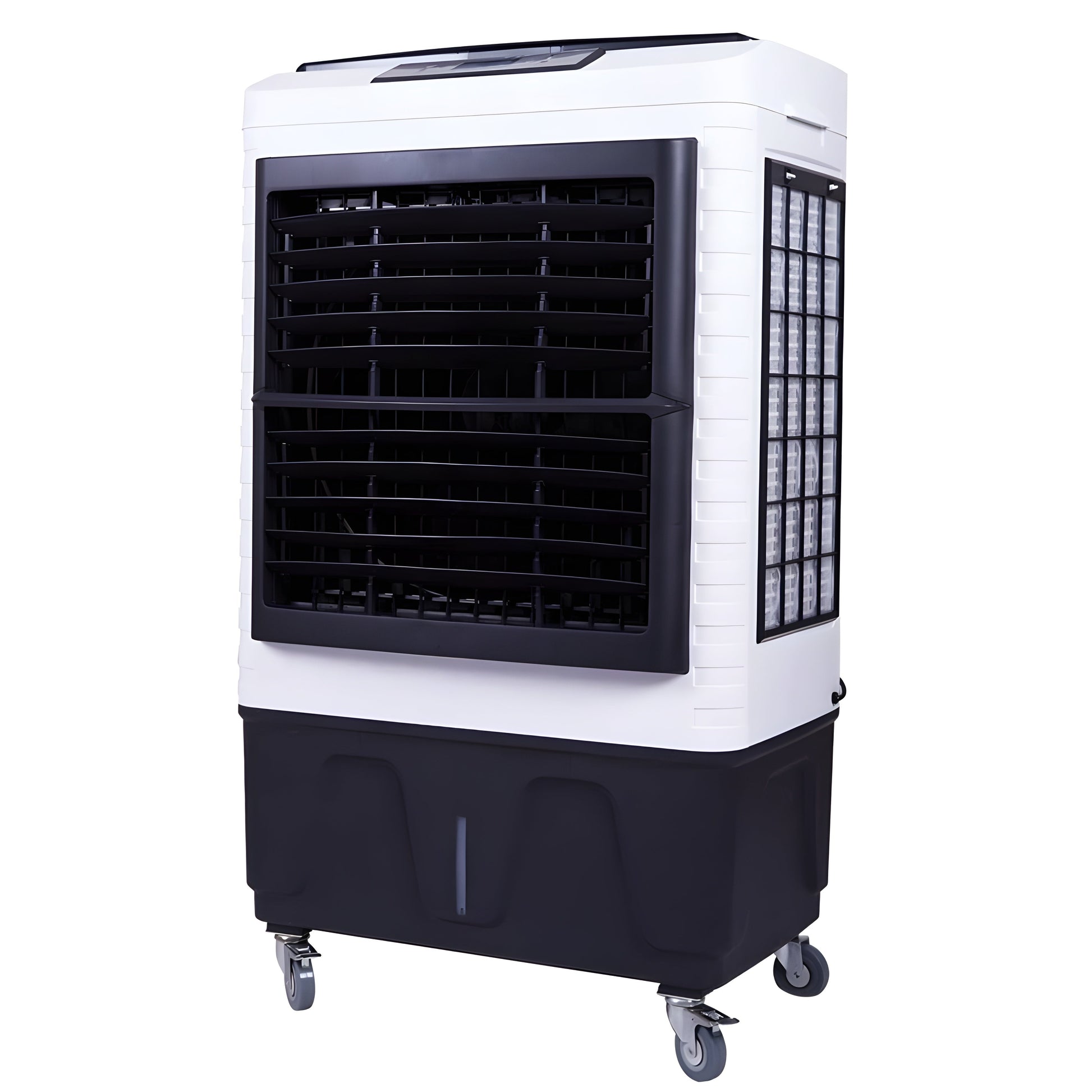 Portable and Convenient: Designed with mobility in mind, this cooler features durable wheels, making it easy to transport from one location to another. Whether you need cooling in different areas or flexibility for changing needs, its portability ensures comfort wherever you go.