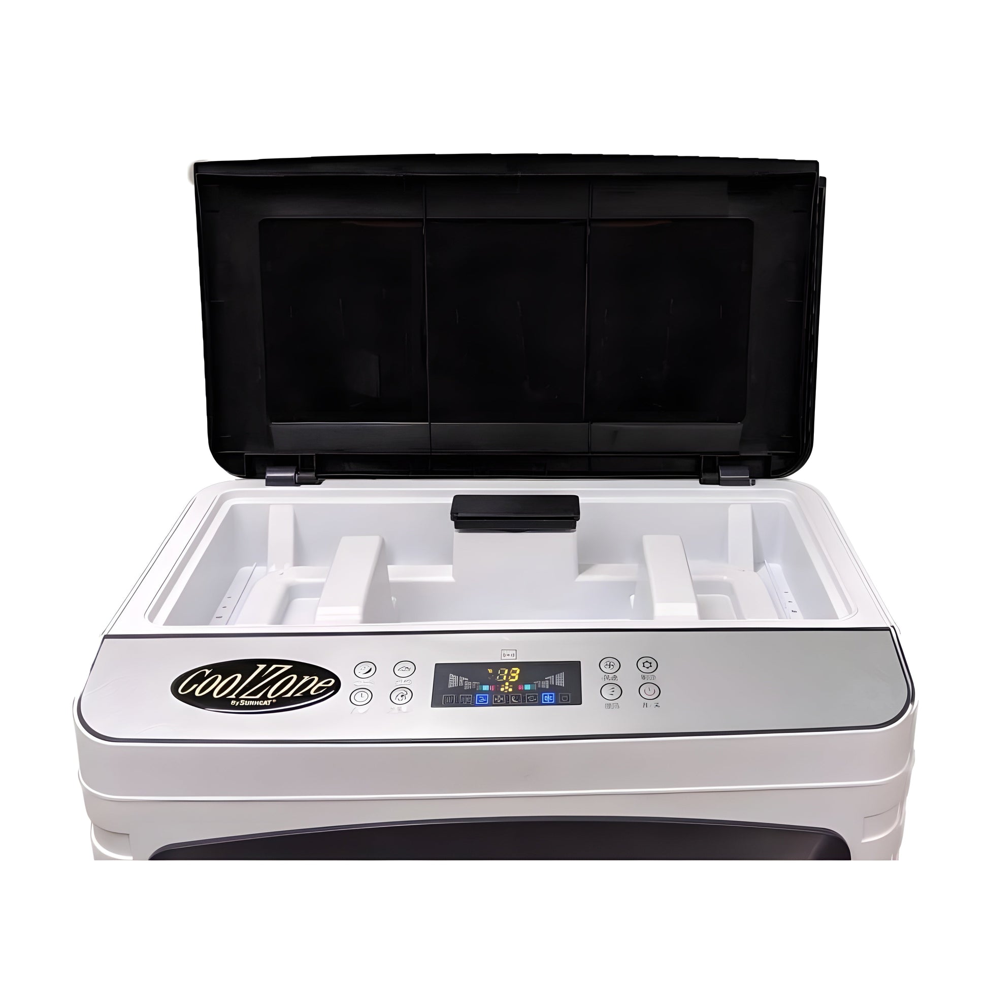 The NEW CoolZone CZ1600 Evaporative Air Cooler with SUNHEAT's revolutionary built-in storage for ice to keep beverages and snacks chilled and recirculated water cold is packed with features not found on any other "old timey swamp coolers" on the market today. Ideal for outdoor patios by the lake, pool, golf course, garage or backyard, bars and restaurants, commercial office use, woodworking and fabrication shops, automotive garage use, or to instantly cool any space more efficiently and economically. With the featured remote control and advanced automation features, this highpowered and quality packed air cooler features a host of usercentric customization options for oscillation, timing, sleep function, shut-off and more!