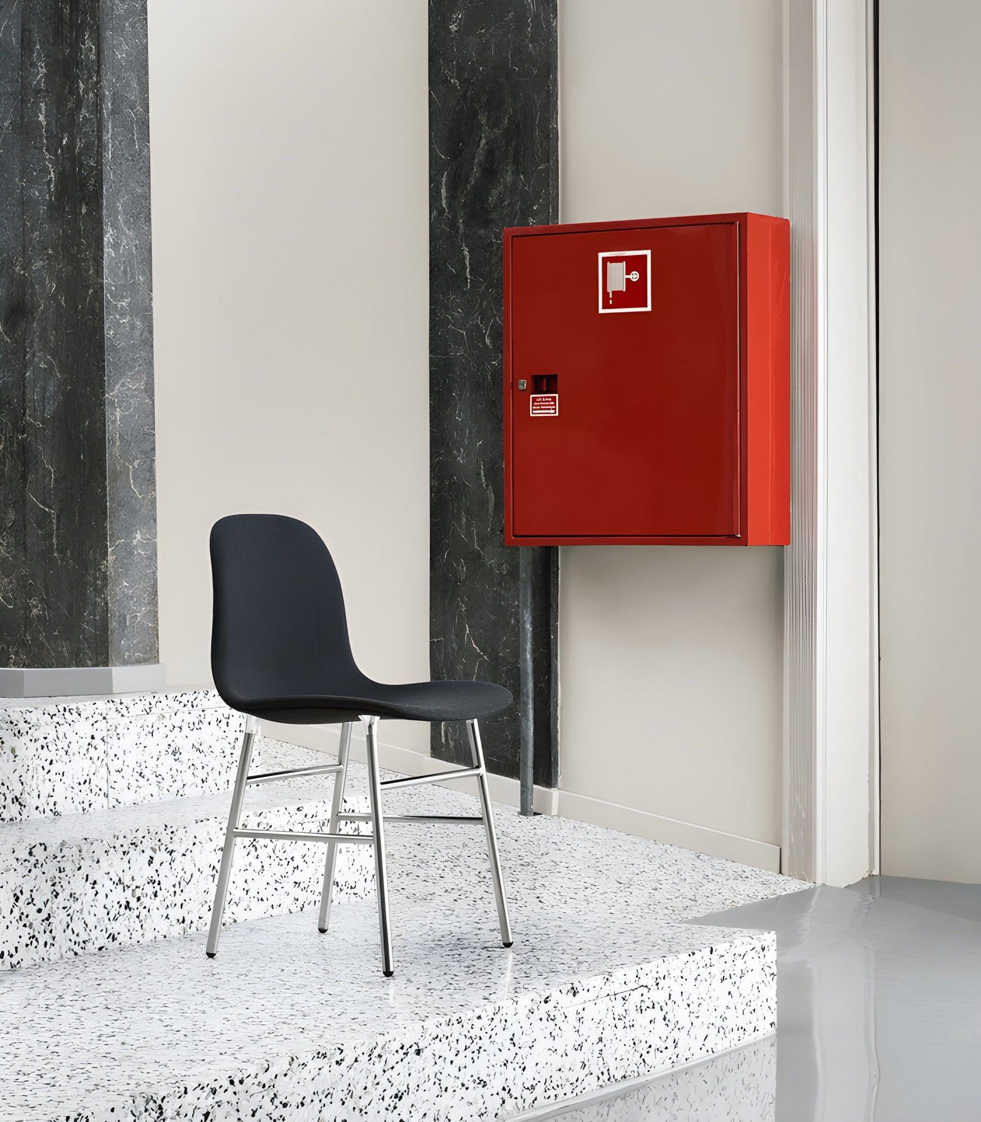 Crafted for durability, the Norman Form Chair Fully Upholstered - Chrome is made with molded plastic for the seat and a sturdy steel frame for support. Additionally, you can choose from various upholstery options, including Camira wool and Sørensen leather. This chair’s innovative design, which integrates the seat and base into one cohesive unit, ensures it fits perfectly into any decor, offering both beauty and function.