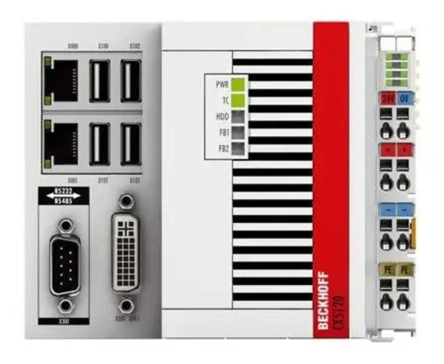 The CX5120 is an embedded PC featuring an Intel Atom single-core processor clocked at 1.46 GHz. It maintains hardware interface compatibility with the CX5000 series, offering two independent Gigabit-capable Ethernet interfaces, four USB 2.0 ports, and a DVI-I interface. Optional interfaces can be factory-installed to enhance connectivity, supporting E-bus or K-bus terminals for versatile I/O configurations.
