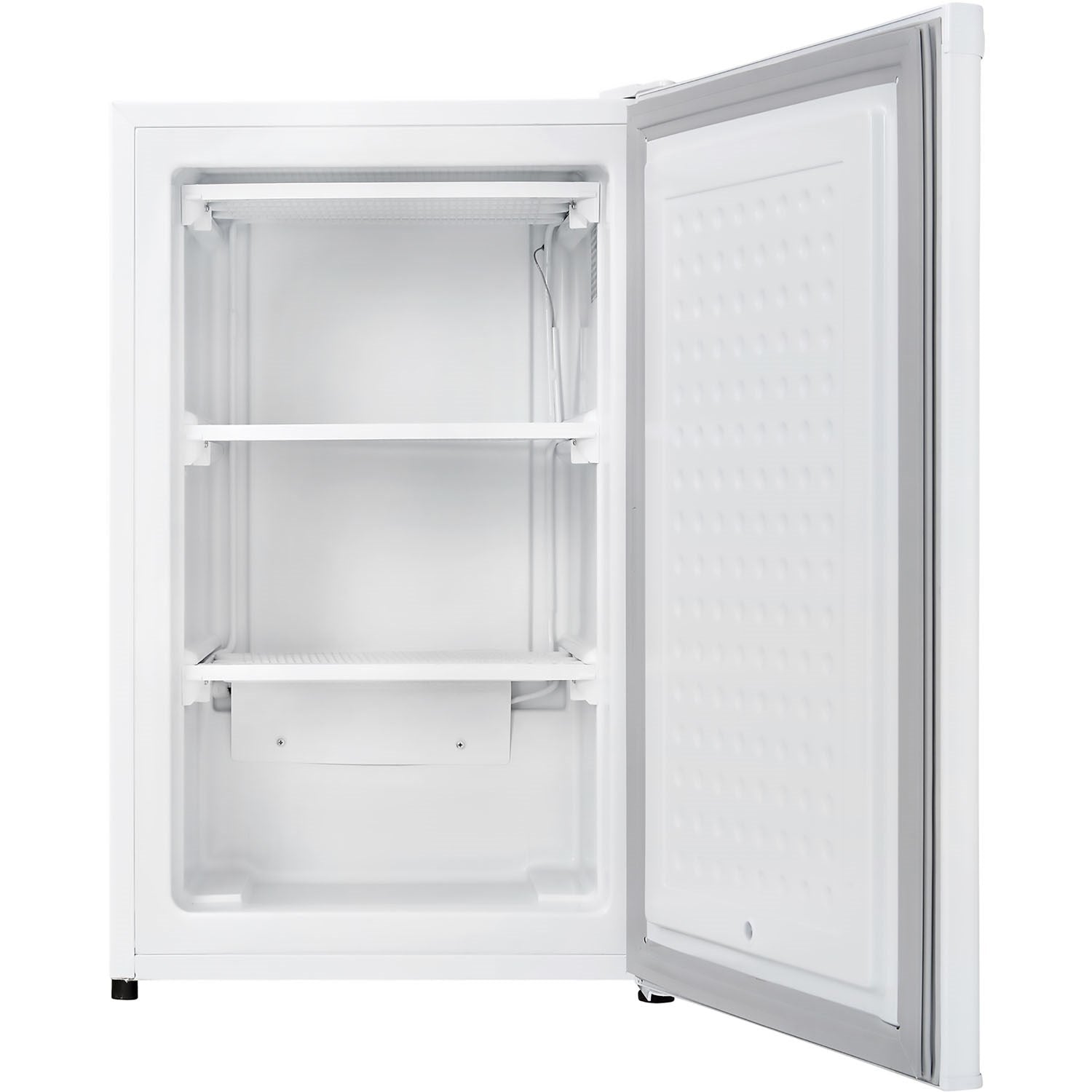 This compact unit can provide you with 3.2 cubic feet (91 liters) of cooling and storage area without taking up too much room. There's an abundance of interior room and organizing is made easy with two convenient quick-freeze shelves. The freezer operates non-stop due to the handy manual-defrost system and the easy-to-use mechanical thermostat.