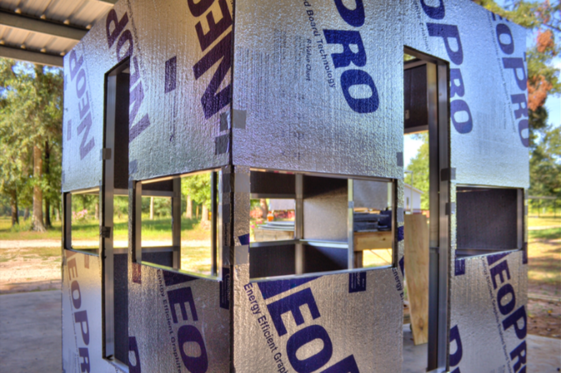 Welded Aluminum Framing - deer blinds are framed with commercial grade aluminum angle and welded for the ideal weight and greatest rigidity. The blinds are then insulated with premium insulation panel.