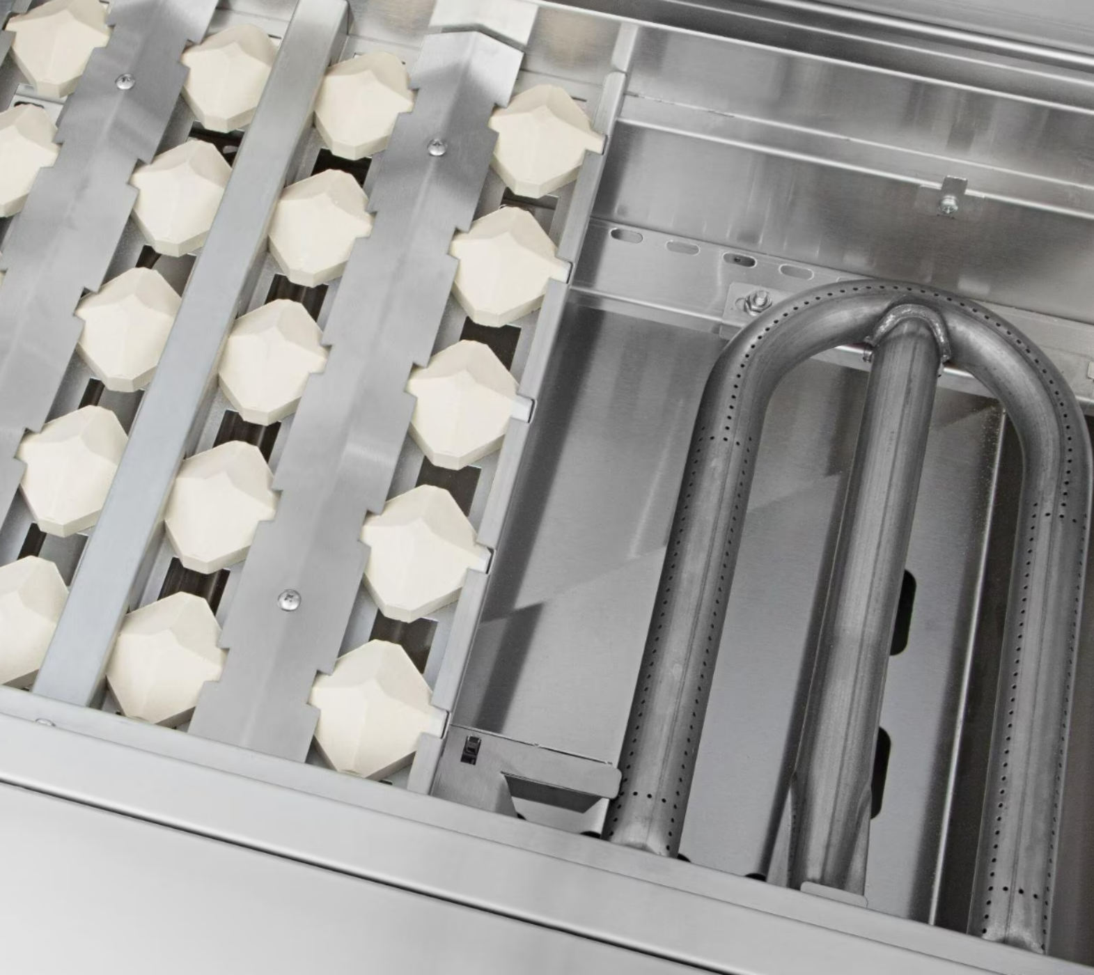 This Delta Heat gas grill brings exceptional quality and performance to any outdoor kitchen. Delta Heat gas grills feature 304 stainless steel with seamless welded construction, sleek high-polished accents, and double-lined hood for maximum strength, durability, and appeal to your entertaining experience. This 38-inch grill has three (3) 18 gauge stainless steel U-Burners (or optional sear burner), ceramic briquette flame tamers that distributes the radiant heat more evenly across the cooking surface, and stainless steel cooking grates. Decorative blue LED lights illuminate the control knobs turning your grill into the main attraction and the interior halogen lights illuminate the 625 square inches of main cooking surface for entertaining at night. The grill has 210 square inches of secondary cooking with the adjustable warming rack. Delta Heat products are designed and manufactured in the USA with pride.